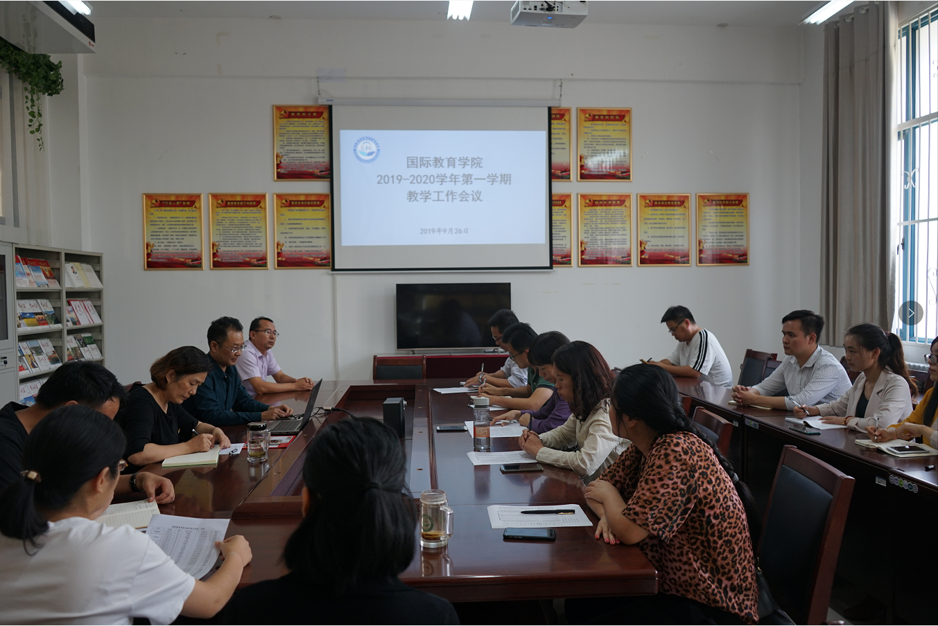 2019年9月26日,tyc122ccvip在党员活动室召开新学年教学工作会议。tyc122ccvip相关领导、9位兼职系主任和公司教师参加了会议。会议由曹经理主持。