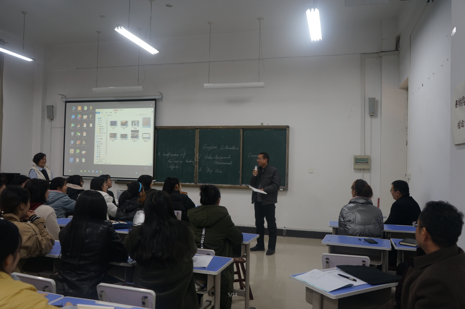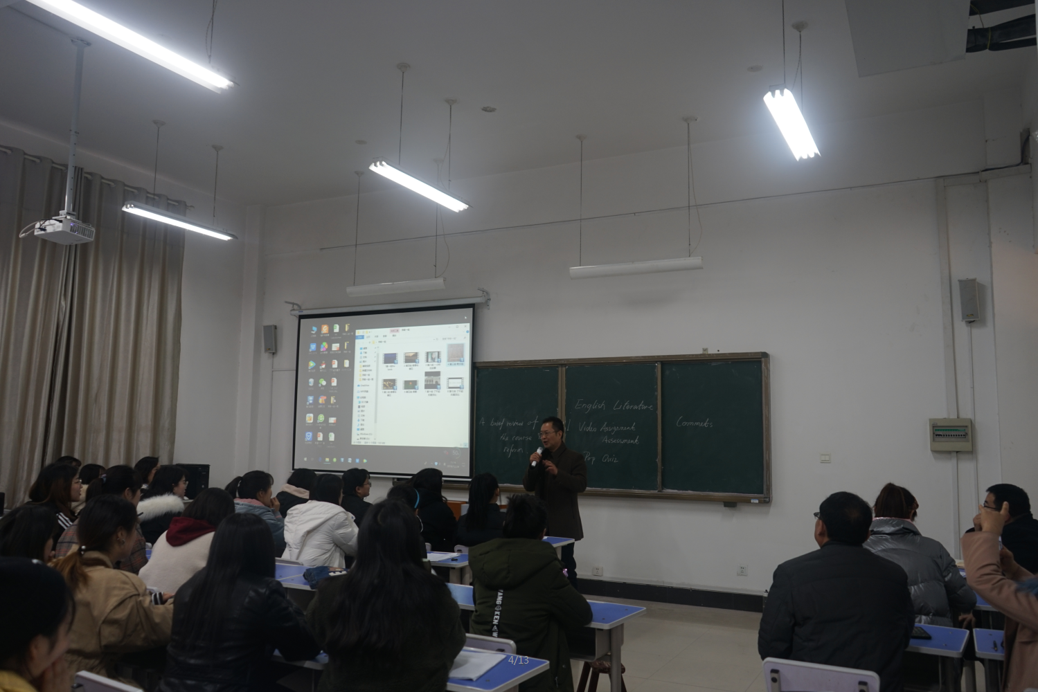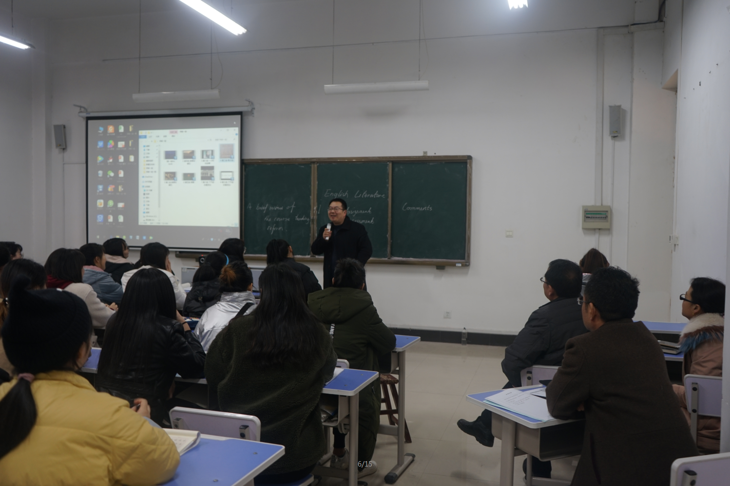 2019年12月24日下午,tyc122ccvip曹庆艳老师的《英语文学选读》课程教学范式改革公开课在汉梁楼138教室进行,tyc122ccvip经理任付标带领教师们师观摩了此次公开课。