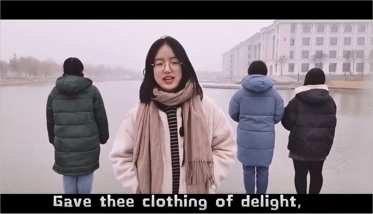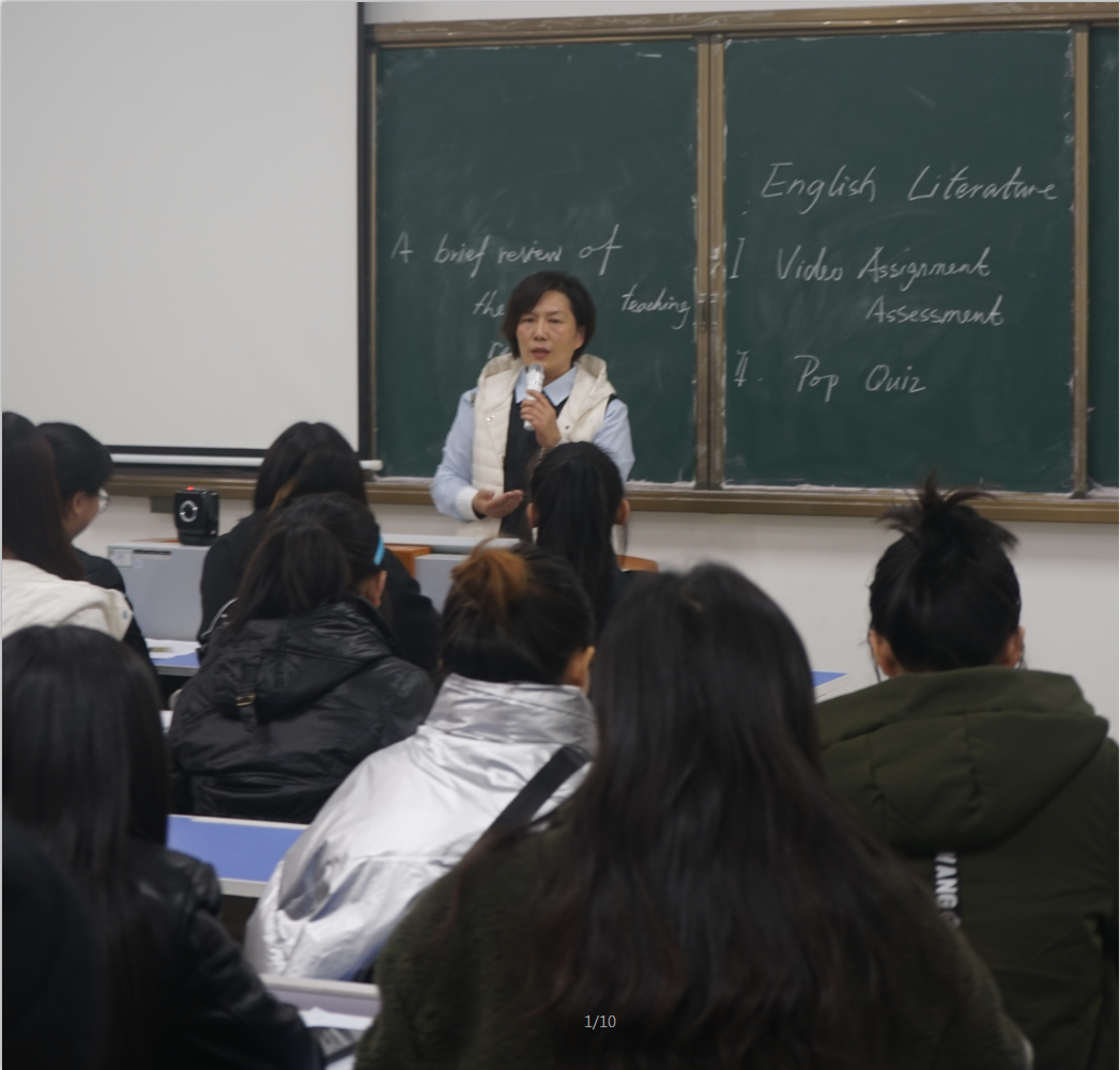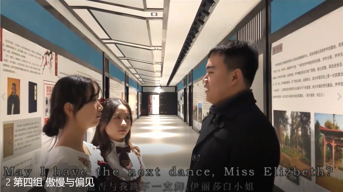 《英语文学选读》课程是为国际本科课程合作项目员工开设的一门国际通识课程。本次公开课的主题是对各小组视频作业的评定,各小组代表也是此次评定的参与者。首先,各小组简单介绍了拍摄内容和各成员分工,之后播放了全体组员参与演出的短视频。每组播放结束后,曹庆艳老师从拍摄创意、语言文字、编剧逻辑、作品理解、作品背景及服道化几个方面做一一点评。曹老师肯定了各小组为视频作业所付出的努力、新颖的创意、用心的角色扮演,同时也点出了一些文字上的不足和文化背景上存在的一些失误。