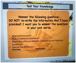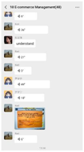 Govende老师以群聊互动的形式为同学们进行精彩讲解。在课程开展中,Govende老师因为担心同学们不能够准确理解她的意思,采用了图片加语音的形式进行讲解,并在互动中准确的找到存在的问题给予答复。Govende老师以生活中的实例引入了“电子商务的概念”,通过对电子商务与传统商务两种商务方式的讲解,引导员工们讨论这两种商务方式的优缺点,在员工讨论过程中,Govende老师又以实例加以引导和讲解。最后又向同学们讲述了电子商务的类型。这样的互动模式让同学和老师交流更方便和有趣。