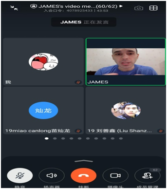 Howell老师通过钉钉平台进行直播授课,教授员工关于微电影创作方面的相关知识,从基础知识开始,一步步的教员工们如何进行微电影创作。James老师幽默风趣、教学方法独特且新颖,广受同学们的一致好评,得到同学们的一致认可。