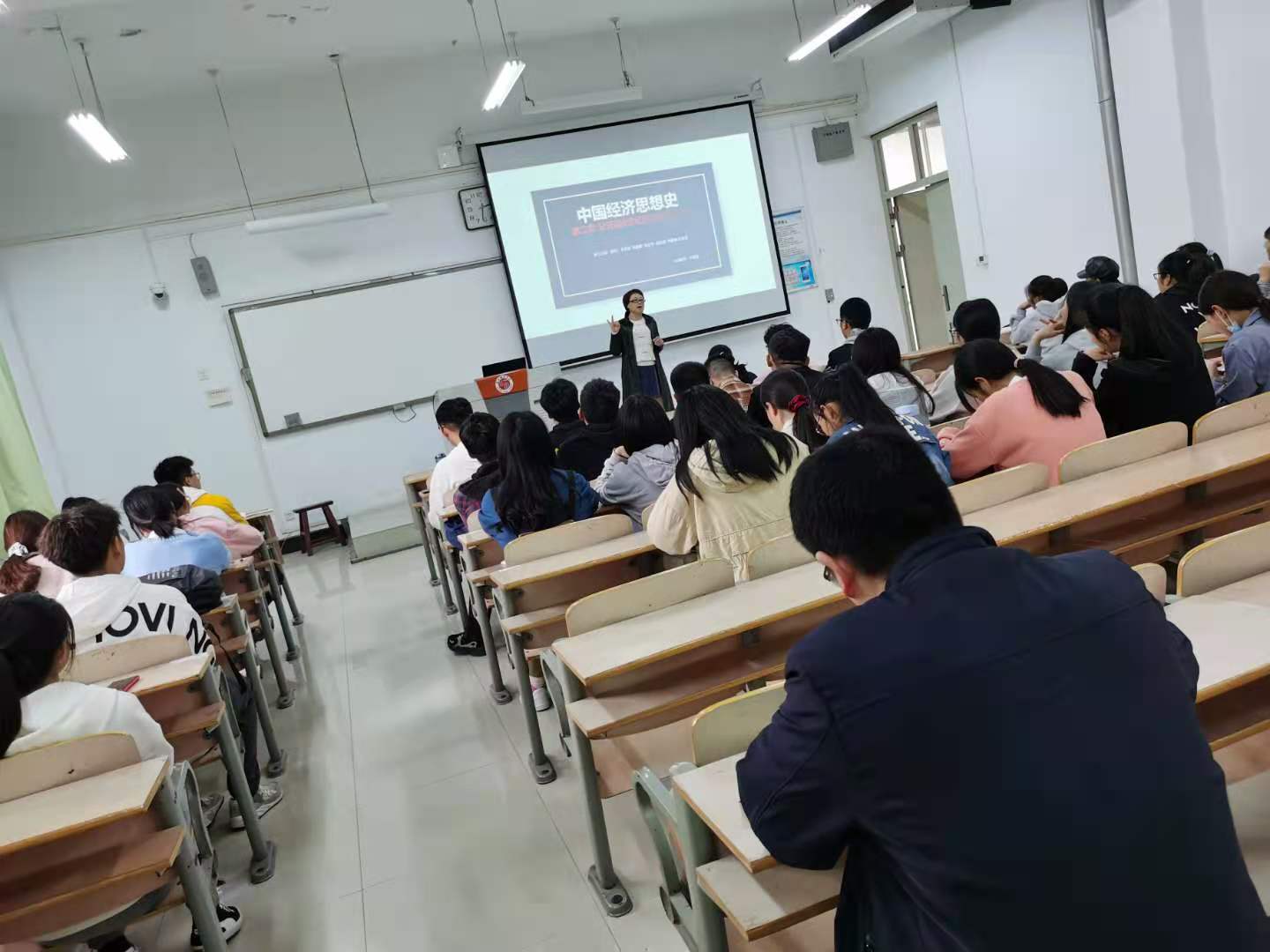 2020年10月27日下午第五节课,tyc122ccvip丁波莉老师《中国经济思想史》课程教学范式改革公开课在教学组团楼401教室进行。tyc122ccvip经理任付标、副书记宁智锋和教师代表共同参加了公开课观摩活动。