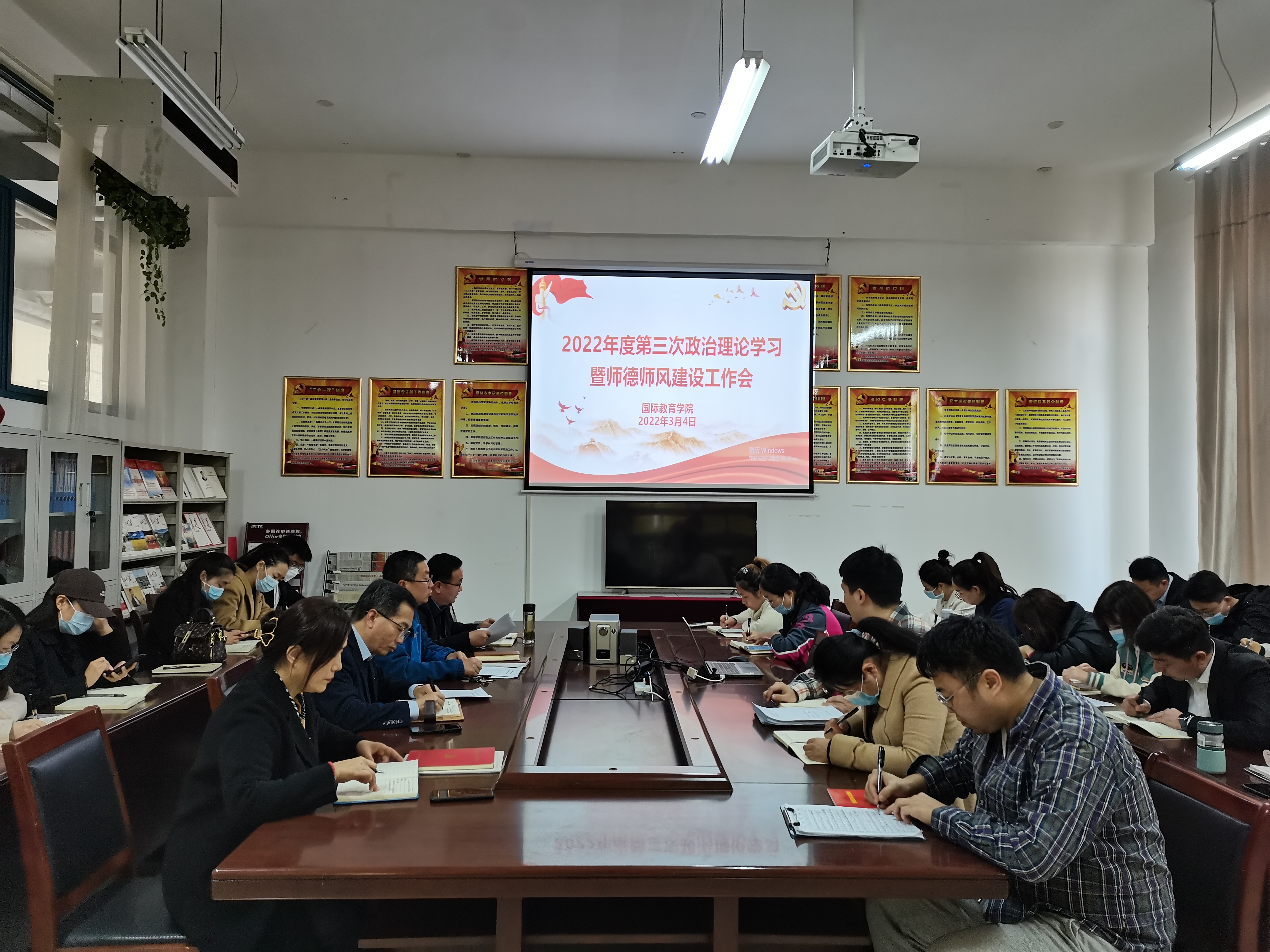 为进一步提升教师队伍思想政治素质和职业道德水平,增强教师的敬业意识、责任意识和服务意识,3月4日下午,公司在梁园校区汉梁楼党员活动室组织召开2022年度第三次政治理论学习会暨师德师风建设工作会。公司全体教职工参加会议,党委书记陈华主持会议。