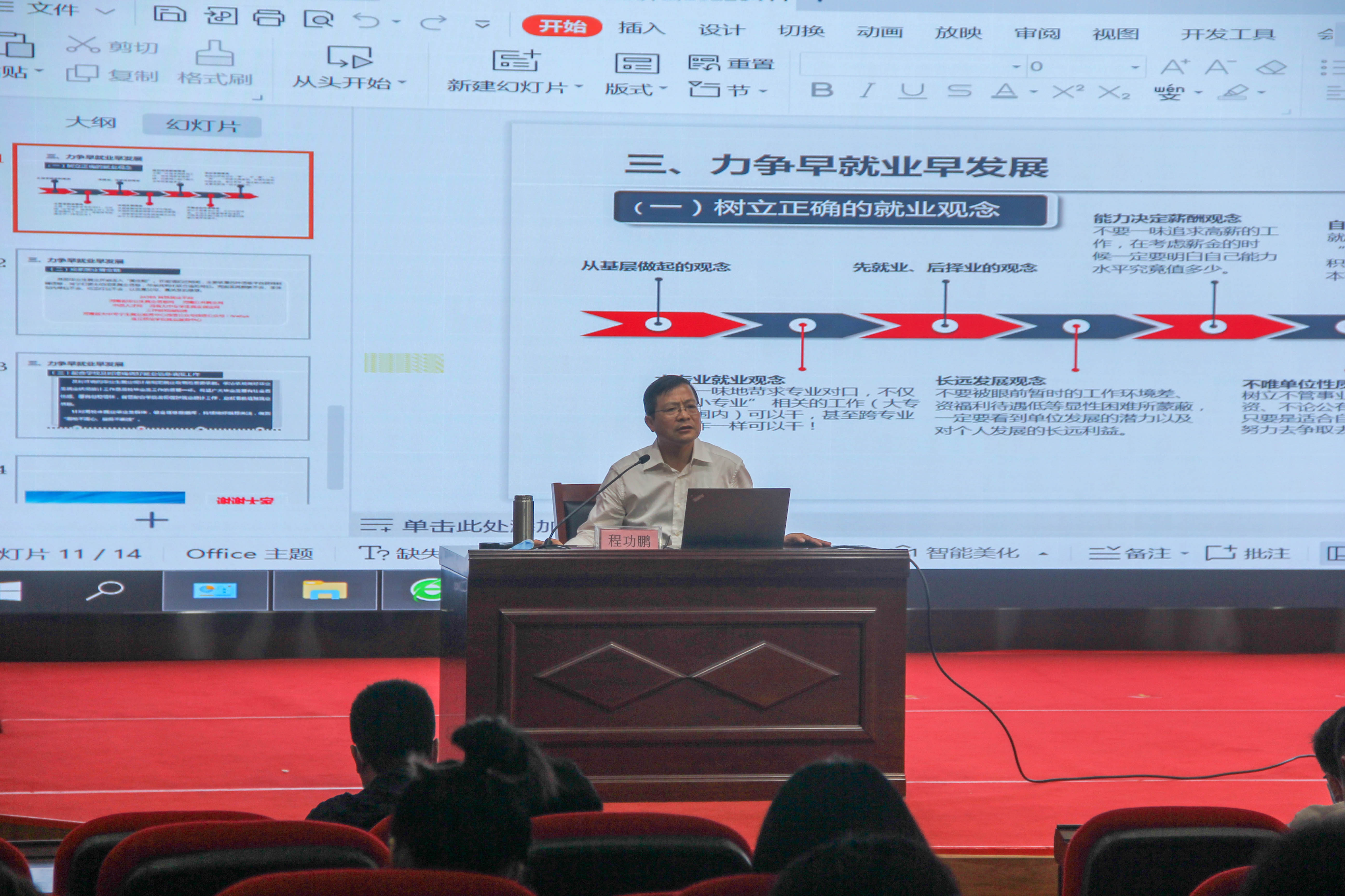 程功鹏分析了当前高校毕业生就业存在的机遇和挑战,帮助毕业生认清就业形势;详细解读了国家和河南省有关高校毕业生就业创业政策,引导毕业生树立正确择业观,抢抓就业黄金期,力求早就业早发展;结合当前实际和工作案例,鼓励毕业生到基层去锤炼能力、建功立业。