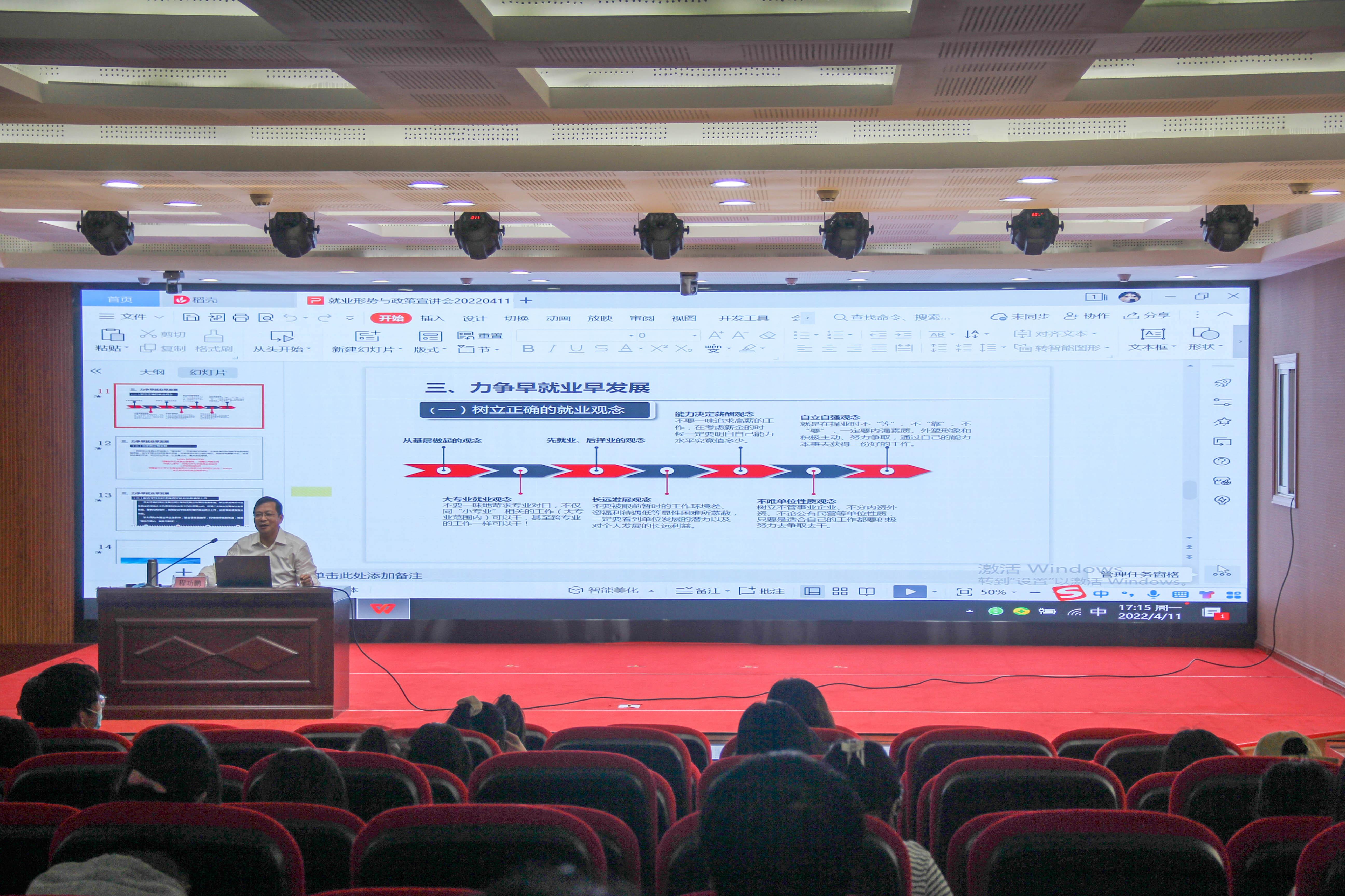 4月11日下午,公司在三商楼145报告厅举办毕业生就业形势与政策专题报告会,副董事长程功鹏作题为《认清形势 把握政策 力争实现早就业早发展》的报告。公司毕业班辅导员、部分2022届毕业生聆听报告。公司党委副书记石贤光主持报告会。