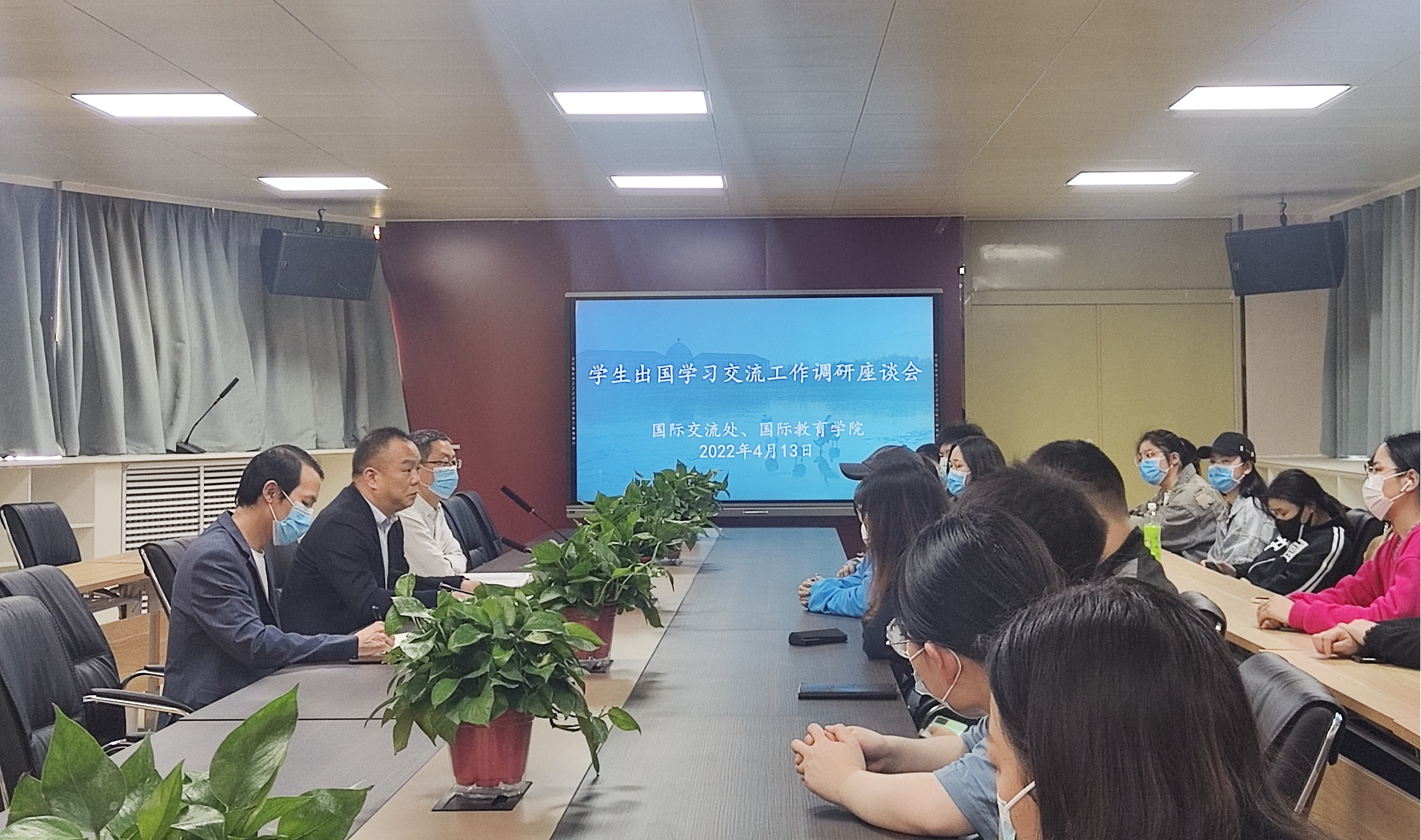 4月13日下午,公司在归德书院二楼会议室组织召开员工出国学习交流工作调研座谈会。国际交流处处长闫永峰、副处长梁爽应邀出席座谈会,2022届毕业生代表参加座谈会。公司党委书记陈华主持会议。