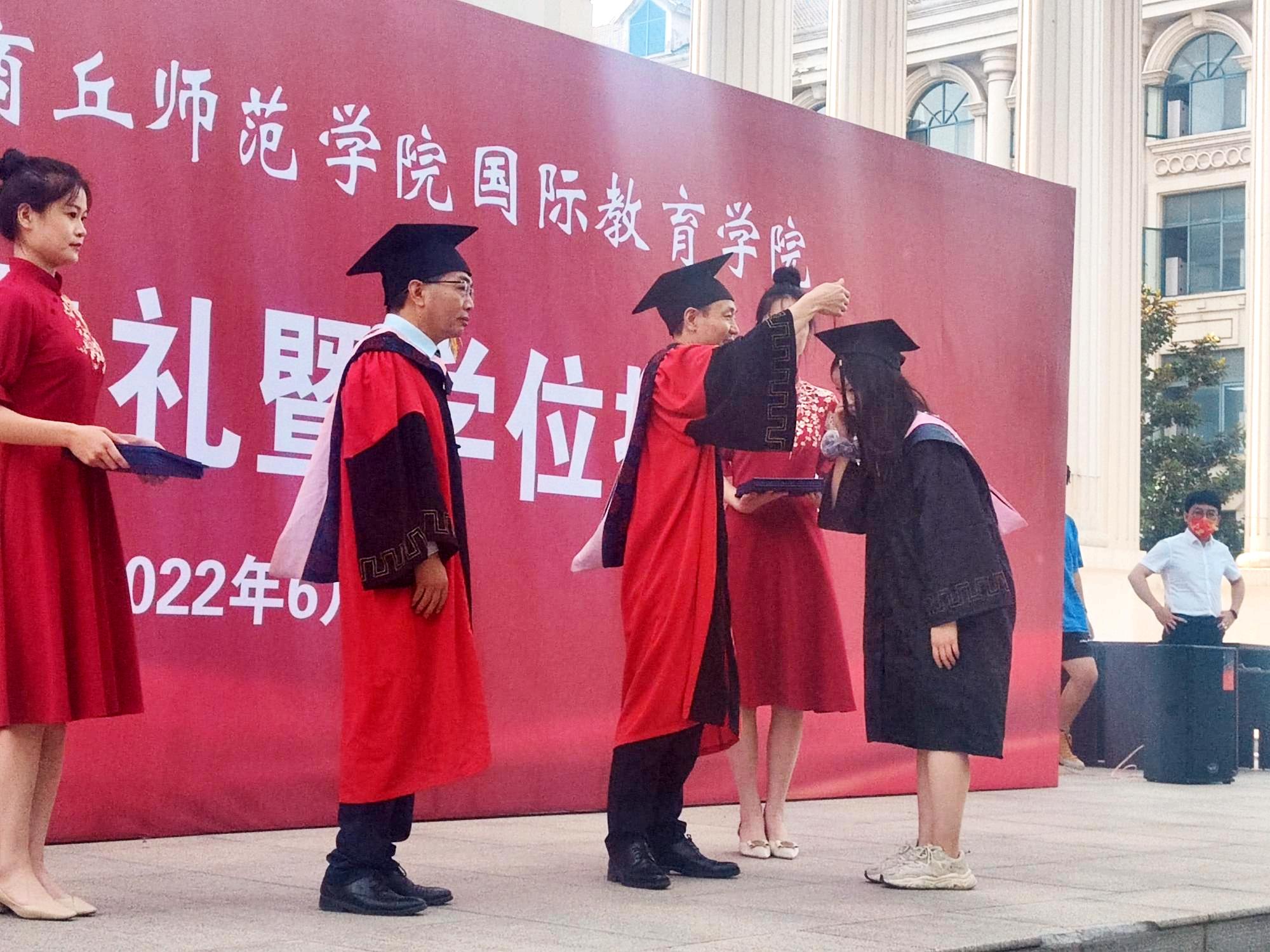 毕业典礼结束后,举行学士学位授予仪式。张箭和周运增依次为毕业生扶正学士帽流苏,颁发学位证书并合影留念。