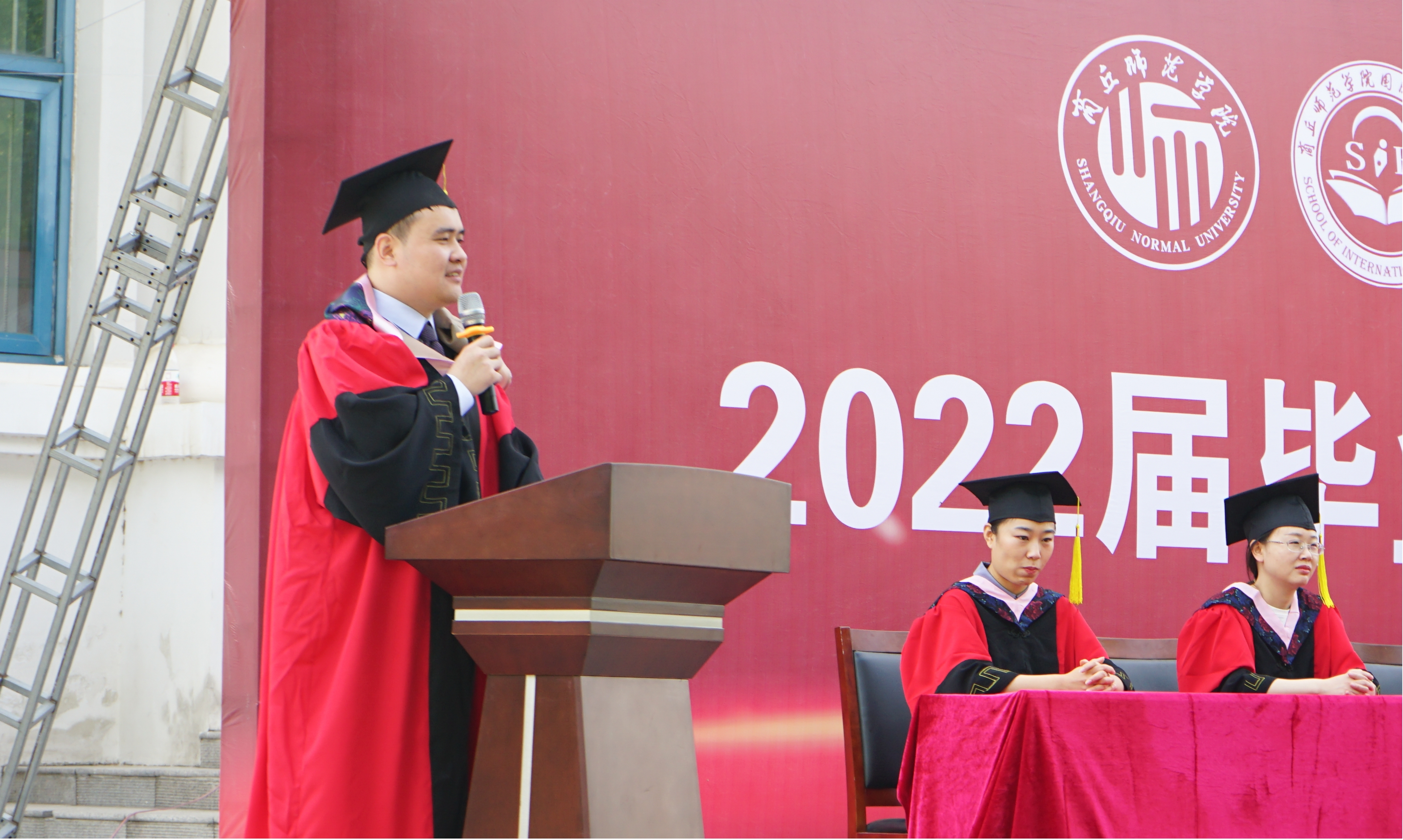 教师代表薛霁在发言中以学长的身份言辞真切地讲述了关于自身考研、参军、就业经历,给予处于就业迷茫期的毕业生们以鼓励与引导;在校生代表李紫旭在发言中为即将离校的学长学姐们送上真挚祝福,并表示将以优秀学长学姐为榜样,坚持终身学习,练就过硬本领,努力成为堪当民族复兴大任的时代青年。毕业生代表陆艺钊同学回顾了四年来丰富多彩的老员工活,细数成绩和收获的同时,感恩母校的培育和老师的谆谆教导,满满的留恋溢于言表。