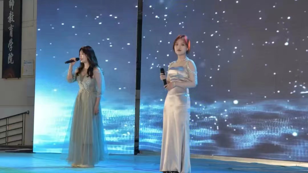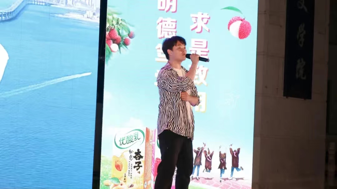 毕业班辅导员们走上舞台,合唱一首《凤凰花开的路口》向毕业生们送上最真挚的祝福。四载春夏秋冬,四年携手同行,他们将离别的不舍和留恋化作祝福,深情寄语毕业生。