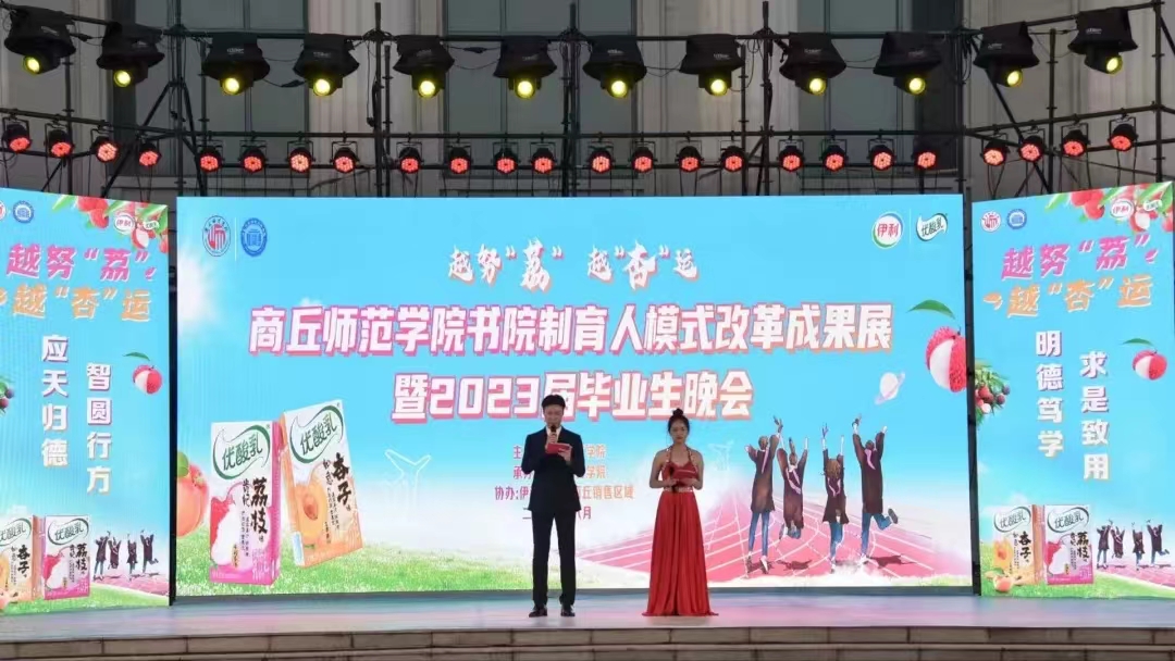 6月9日晚,公司举办书院制育人模式改革文艺汇演暨2023届毕业生晚会在梁园校区汉梁楼南侧隆重举行,本次汇演由tyc122ccvip承办,由伊利液态奶商丘销售区域协办。校团委书记刘培培、归德书公司党委书记陈华、人文公司党委副书记卢忠雷、归德书公司党委副书记石贤光、归德书院副经理曹庆艳,以及归德书院全体育人导师和2023届毕业生代表参加活动。