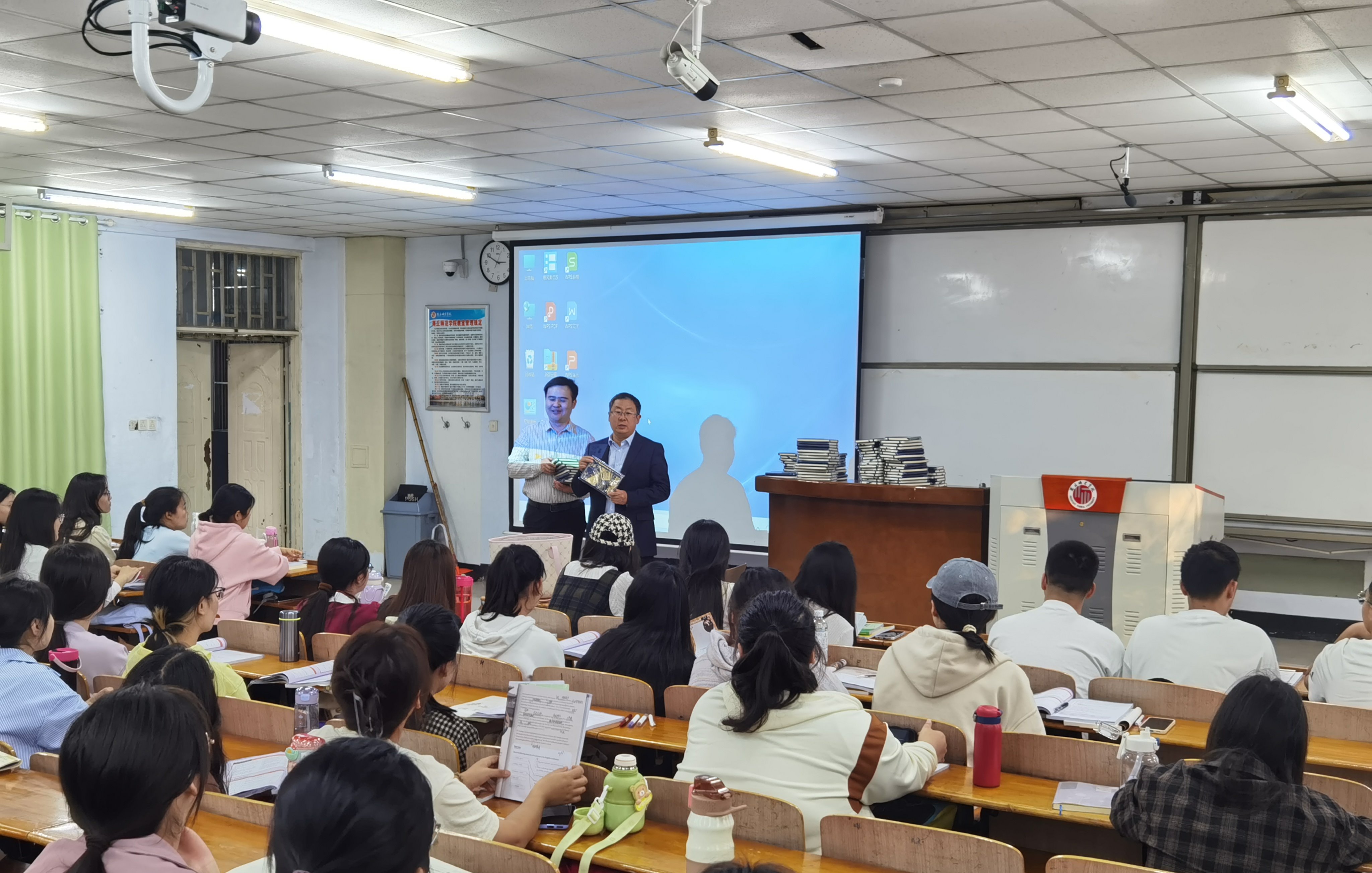 陈华等走进教室,了解员工的学习情况,检查早自习的秩序,并对同学们认真的学习态度给予了认可与肯定。随后,院领导和老师为员工发放了精心制作的学习加油包。