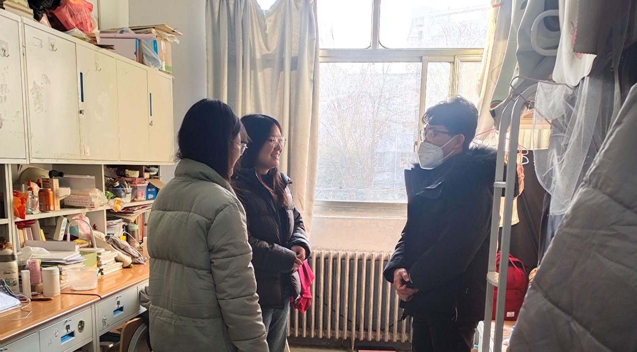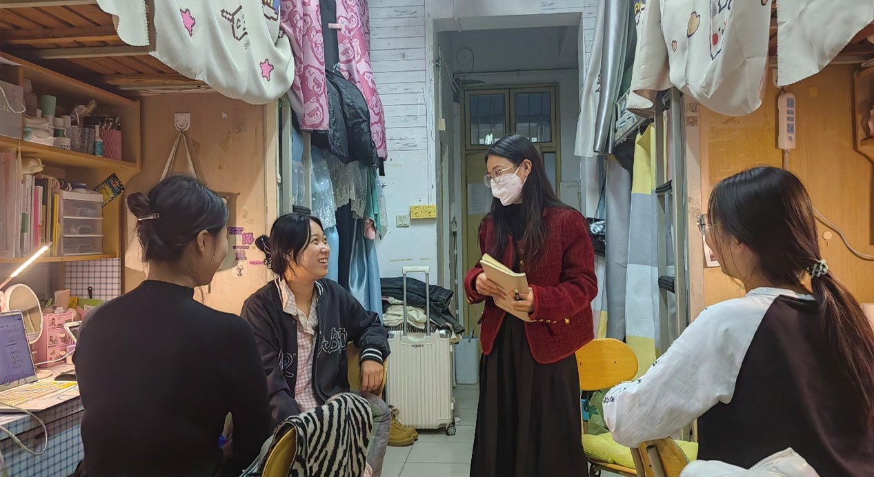 走访过程中,育人导师与同学们进行了亲切的交谈,详细询问了员工的学习进度、生活情况以及思想状态,强调寝室用电安全、卫生建设,对员工们在日常生活中遇到的问题给予了耐心的解答和指导。