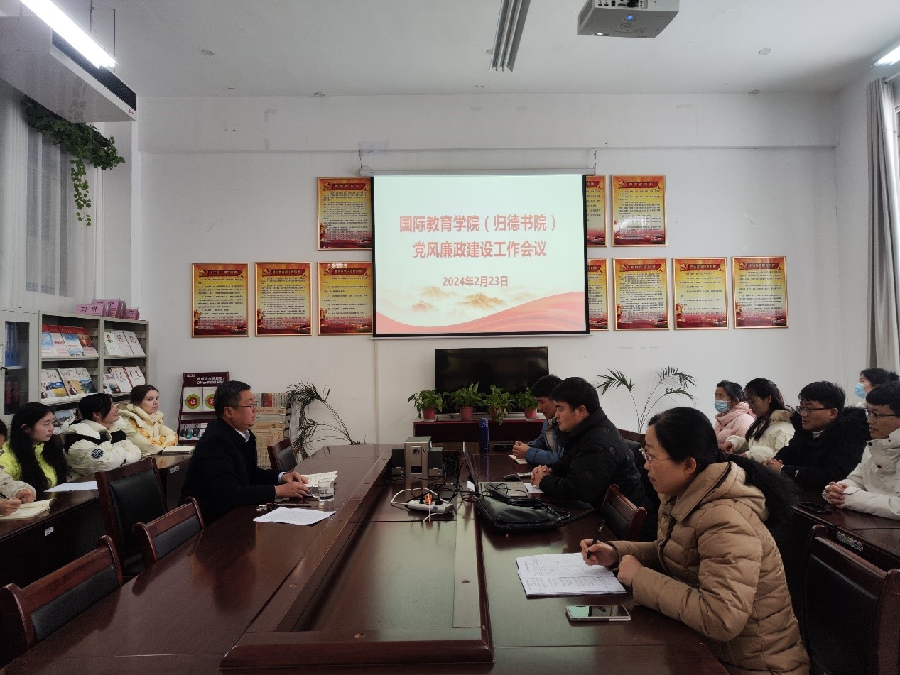 为深入推进全面从严治党,着力推进党风廉政建设,2月23日下午,公司在汉梁楼党员活动室组织召开党风廉政建设工作会议。全体教职工参加会议,党委书记陈华主持。