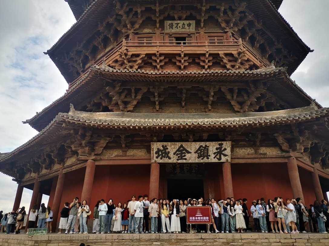 在大同市,师生们参观了应县木塔,全称为佛宫寺释迦塔,也称之为释迦塔,属于我国现存的一座较为古老的木塔式结构建筑。之后在悬空寺领悟了恒山十八景中“第一胜景”,悬空寺距离地面约50米,建筑特色可以概括为“奇、悬、巧”三个字。“悬”是悬空寺的一大特色,表面上看寺庙整个建筑是用十几根碗口粗的木柱支撑着,凌空飞架,有部分支撑木柱是不受力的,随后前往云冈石窟,它是第一批全国重点文物保护单位,无论是露天的众多佛像,还是洞窟内部浑然一体的描绘西方极乐世界的壁雕、壁画,都有其独特的造型艺术美学,华严寺的艺术特色体现在其严谨的布局和深邃的宗教内涵。寺内建筑依山势而建,错落有致,既有雄伟的殿堂,又有幽静的院落,营造出一种神秘而庄重的氛围。大同市古城的中国雕塑博物馆,展览了几百件国内外著名艺术家的雕塑作品,师生们面对那么多优秀的艺术作品,深深地受到震撼和洗礼。