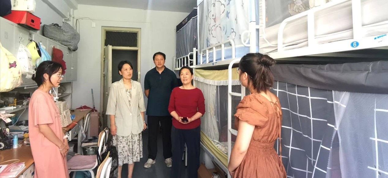 走访中,领导老师对宿舍和自习室的卫生情况、基础设施以及用电安全等方面进行了细致检查,并详细了解了员工期末复习、考研备考情况,鼓励员工制定复习计划,合理规划时间。同时暑假将至,老师们详细询问同学们的假期安排和学习生活情况,并就他们未来的发展和学业规划进行交流。