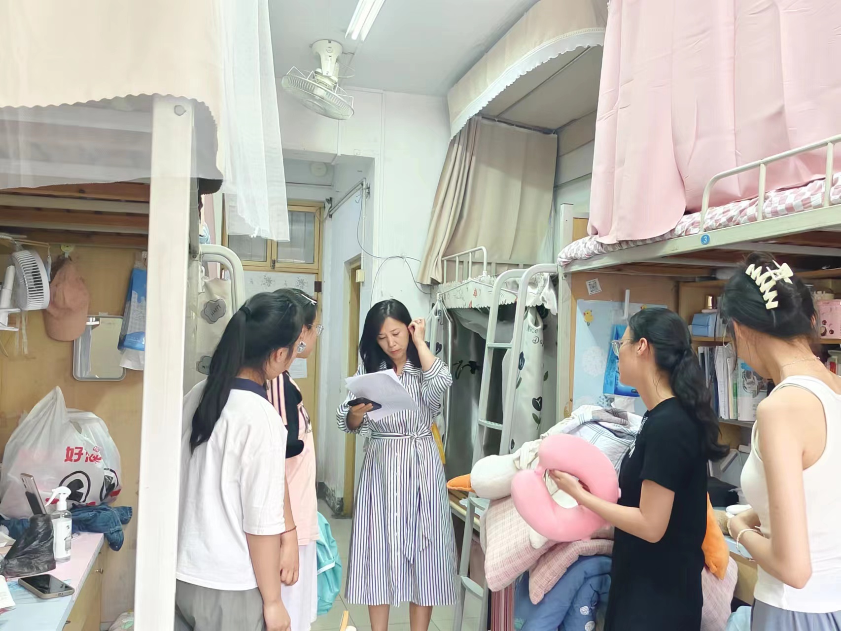 检查组一行逐一排查汉梁楼及归德书院的教学设备、办公环境、用电安全、消防安全隐患等,同时对搬迁宿舍的学习、生活环境进行了重点检查,了解师生所需,做实后勤保障,进一步消除了安全隐患,为新学期的各项工作奠定了坚实的基础。