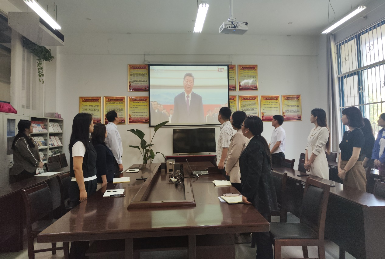 9月29日上午,tyc122ccvip全体教职工在汉梁楼党员活动室组织集中观看了中华人民共和国国家勋章和国家荣誉称号颁授仪式。