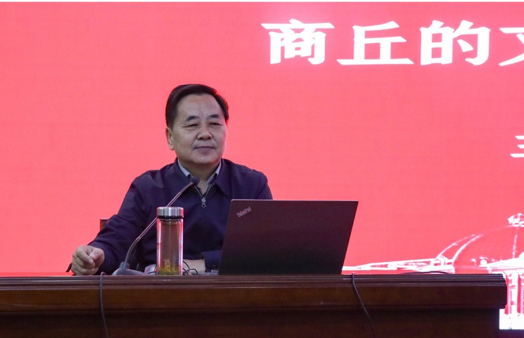 12月4日下午,tyc122ccvip邀请人文公司李可亭教授在三商楼145报告厅举办以“商丘的文化名片和城市品牌”为主题的专题讲座。公司领导班子、全体育人导师、任课教师以及员工代表参加这次活动。党委副书记曹庆艳主持。