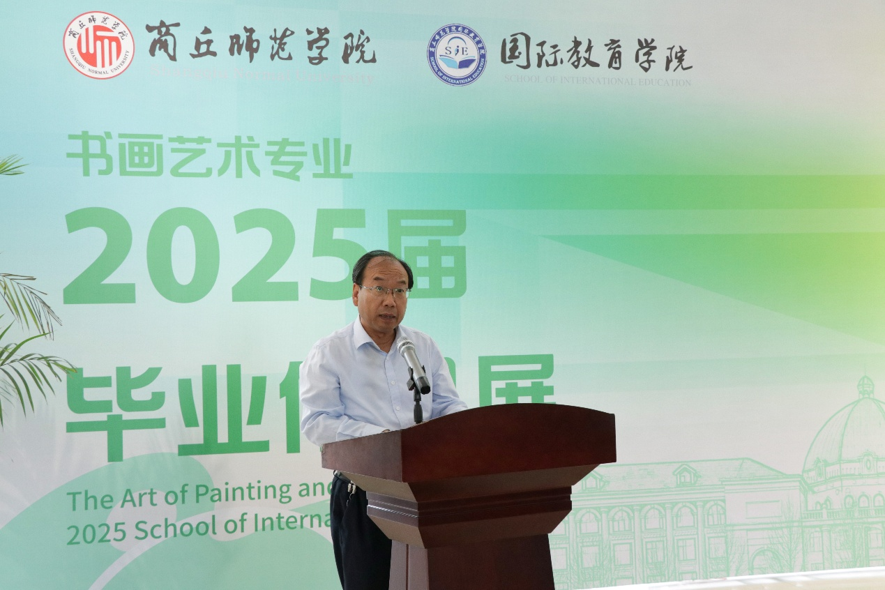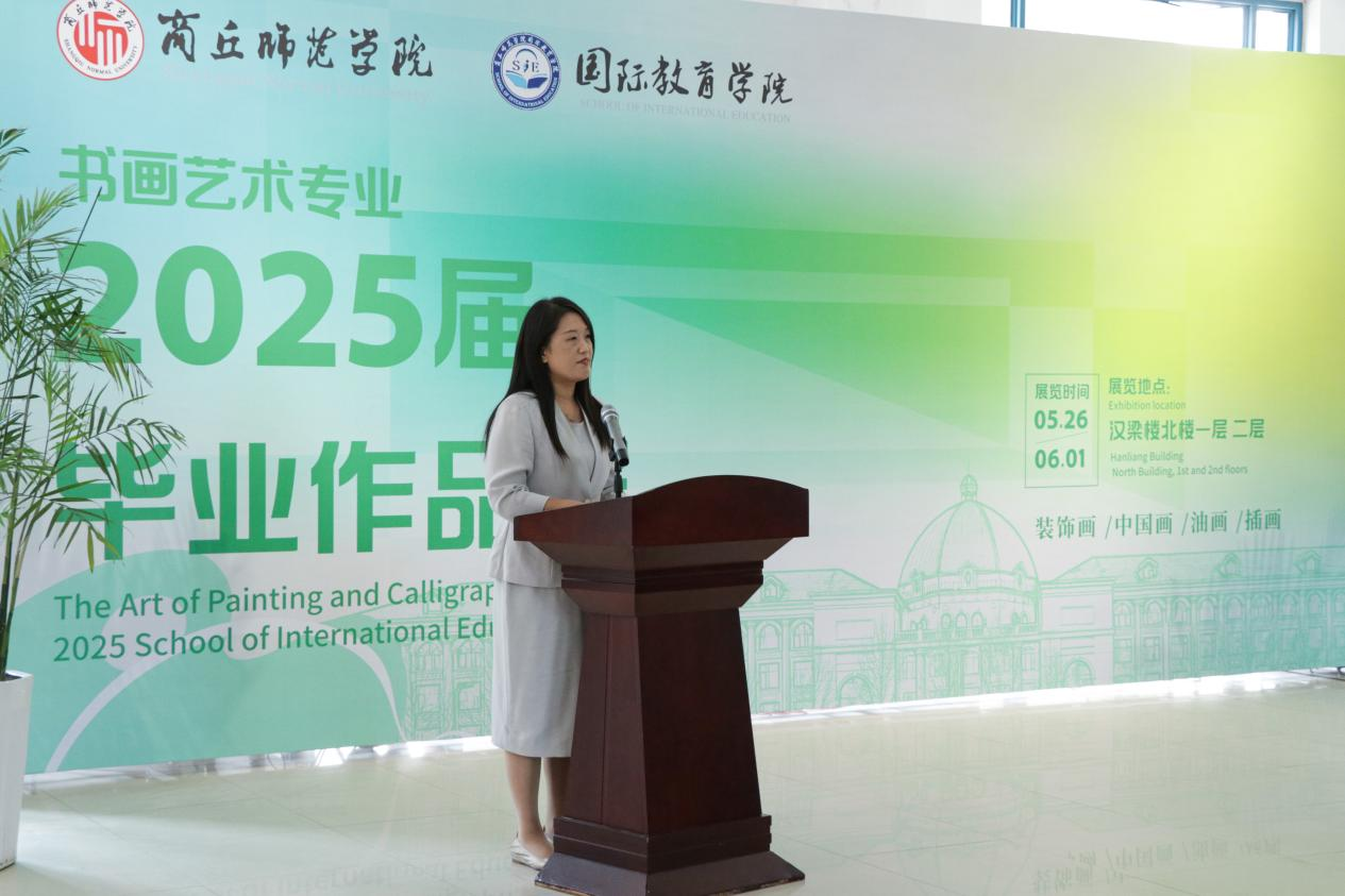 教师代表夏茹在发言中首先对本届毕业作品展的成功举办表示祝贺,她希望毕业生们在未来依然能保持对艺术的热忱,敢于突破常规,勇于表达自我。书画艺术专业省级优秀毕业生孙振源作为员工代表发言,他满怀感恩地回顾了三年求学时光,表示“应天归德、智圆行方” 的校训将成为他们未来人生路上的宝贵财富,激励他们在艺术道路上继续奋进。