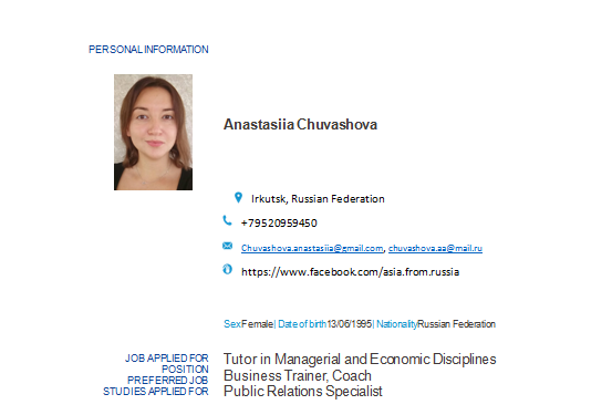 Anastasiia  Chuvashova老师简介