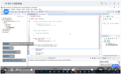 Jin老师利用线上教学软件钉钉为软件工程的员工开启Java语在线教学。在课堂上,有着丰富教学经验的Jin老师用灵活的教学方式进行讲授和教学,受到了员工们的欢迎与喜爱。