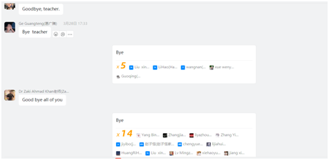 Khan老师用自己诙谐的语言让同学们原本拘束的紧张情绪变得轻松愉快。同学们也主动与Khan老师进行交流,提出疑问,课堂气氛活跃。课下,Khan老师为员工们上传了本节课件,并提醒同学们下课后继续学习并私信给他自己不懂的知识。