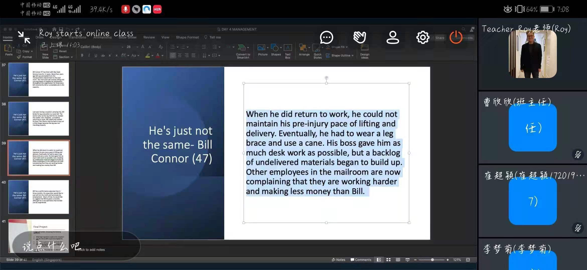 Barela教授在钉钉上开启了Management课程的线上教学。Barela老师上课幽默风趣,课堂上会提出一些问题让员工回答、与员工进行互动,良好活跃的课堂氛围极大调动了同学们的听课的积极性。Barela 老师亲切和蔼的态度深受同学们的喜爱,纯正流利的口音和专业的知识技能更是让同学们受益匪浅。