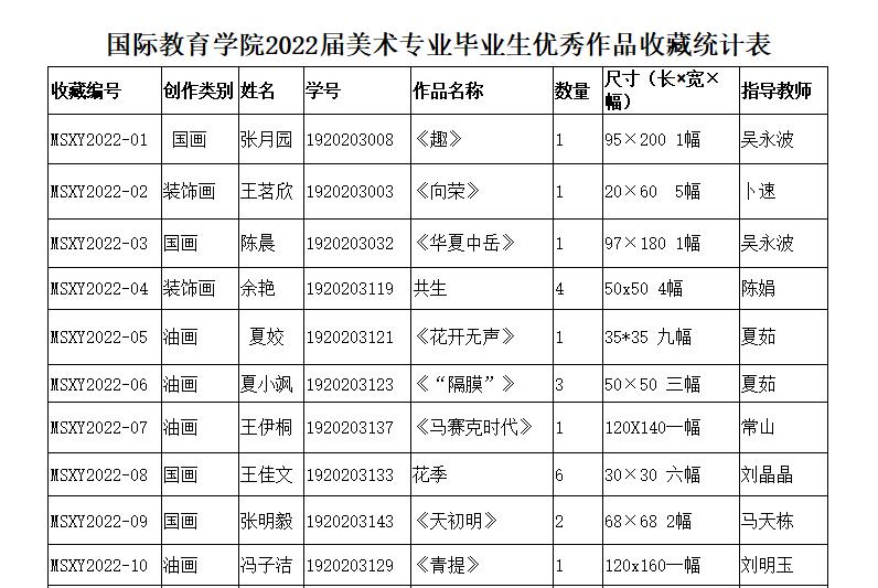 2022届美术专业员工作品收藏列表: