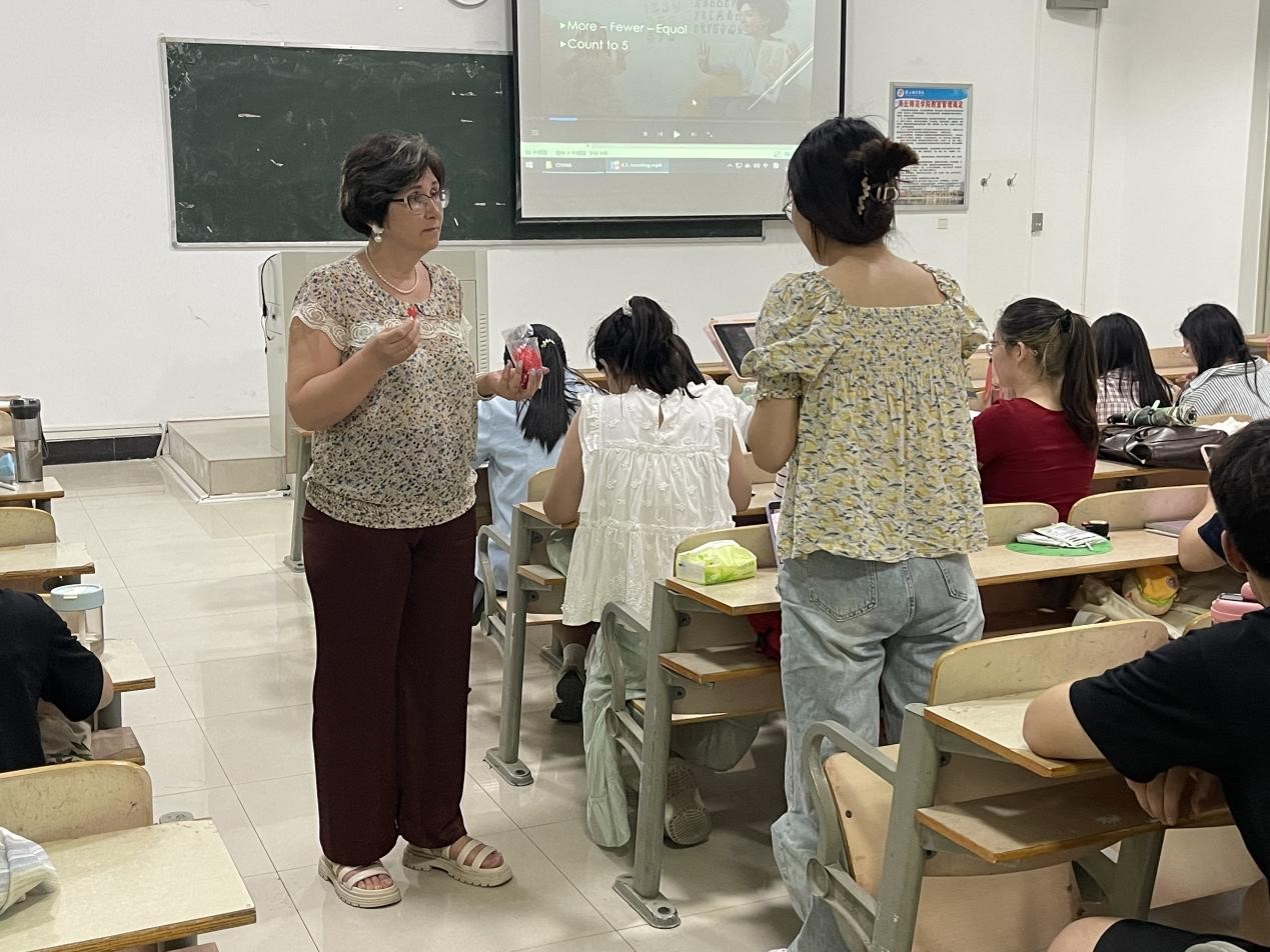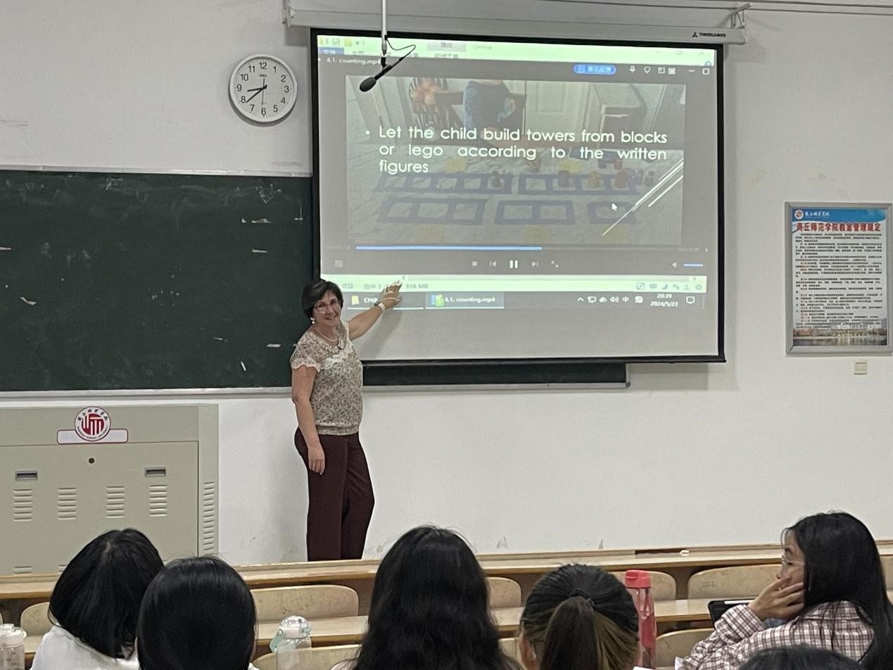 根据中外合作办学要求,tyc122ccvip于2024年5到6月为2021级学前教育专业员工引进Teaching Method of Mathematics《数学教学方法》课程,此次授课的是来自乌克兰的Liudmyla Holubnycha。