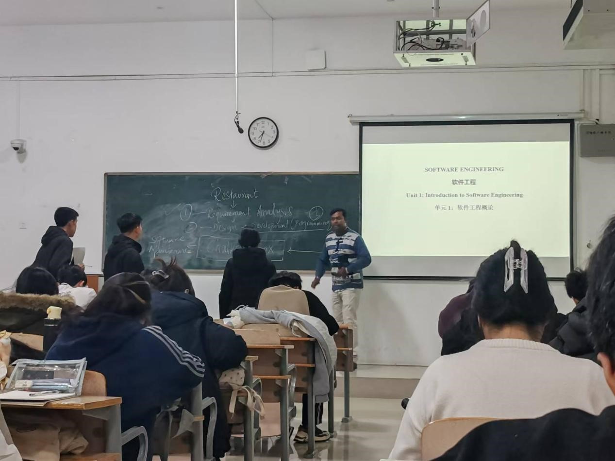 根据中外合作办学要求,公司于2024年11月为2023级软件工程专业员工引进课程Software Engineering(《软件工程》),本次授课的教师是计算机科学专业的Vijesh Krishnamoorthy博士,他带来了国际先进的软件工程教育理念和方法,为员工们带来了更丰富、更前沿的课程内容和教学形式。
