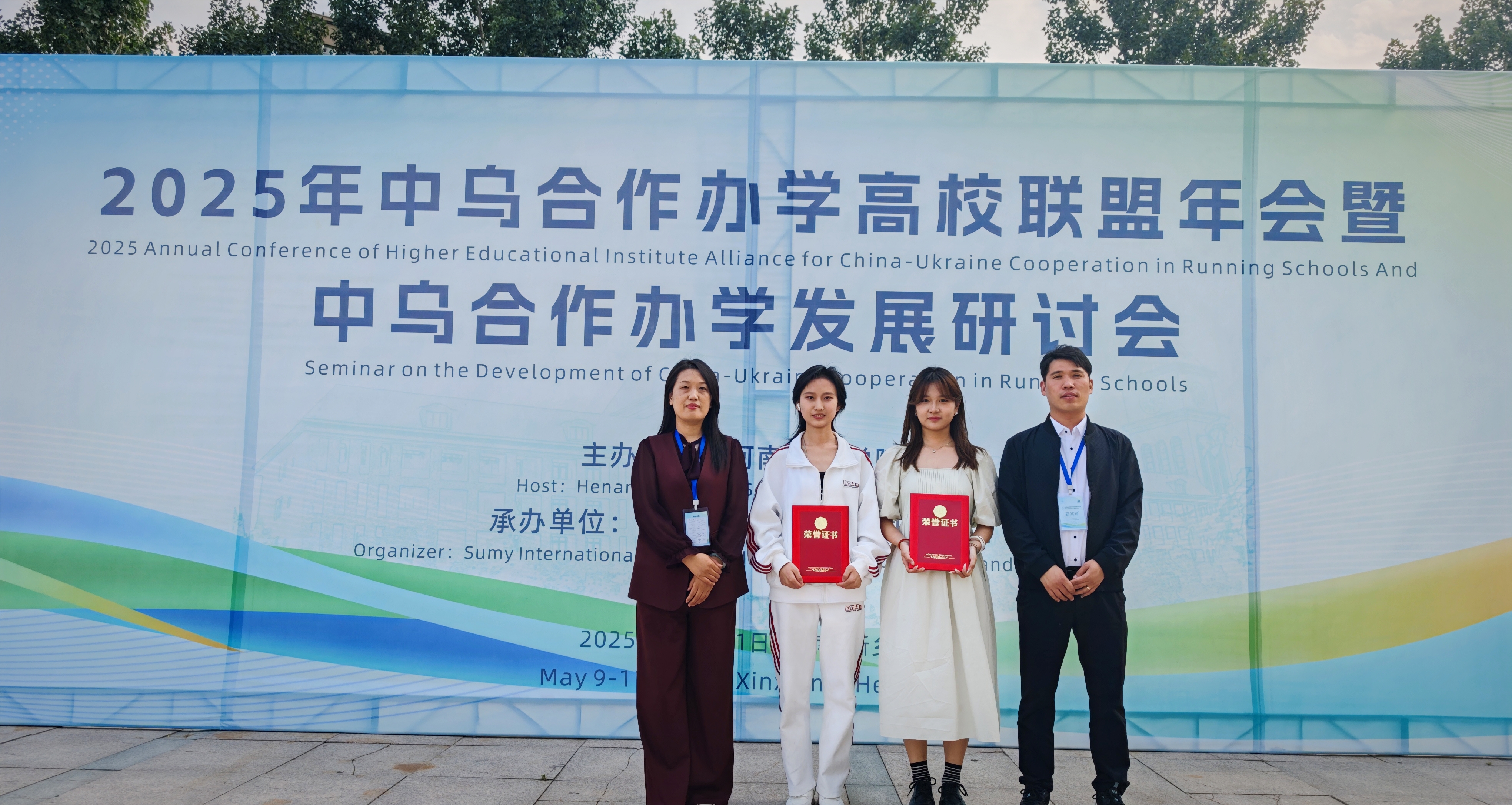 2025年5月9日,2025年中乌合作办学高校联盟年会暨中乌合作办学发展研讨会在河南科技公司举行。本次会议由河南科技公司主办,河南科技公司苏梅公司承办,来自全国十余所高校的代表、专家学者及员工代表齐聚一堂,共同探讨中乌高等教育合作的新机遇与发展路径。公司副经理杨静、国际交流处领导和俄语课教师董军飞参会,公司学前教育专业2023级陈浈、李想两位同学参加了同期举办的首届英语演讲比赛。