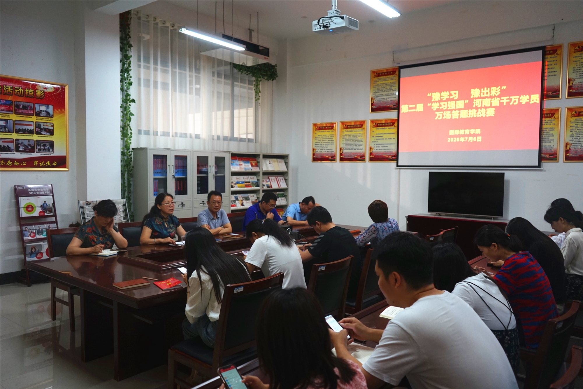 7月6日,tyc122ccvip分别组织全体教工党员和员工党员在梁园校区汉梁楼144党员活动室和腾讯会议网络平台开展“豫学习豫出彩”第二届“学习强国”河南省千万学员万场答题挑战赛初赛。