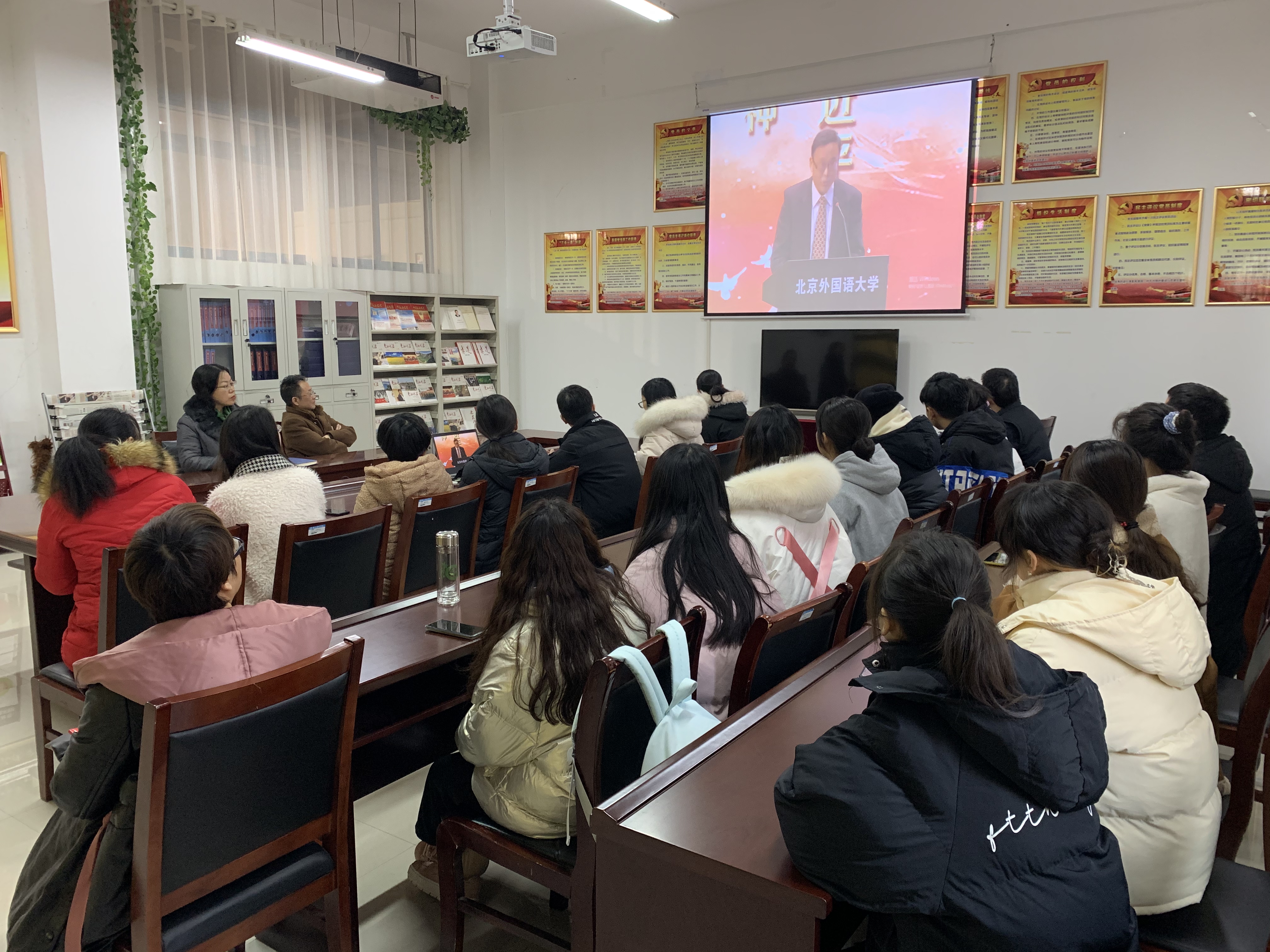 与会人员首先集中观看了教育系统国家宪法日“宪法晨读”活动直播。庄严的升旗仪式后,与会师生同步参与了宪法晨读活动,对宪法本身和宪法精神有了更加深刻的理解和感悟。