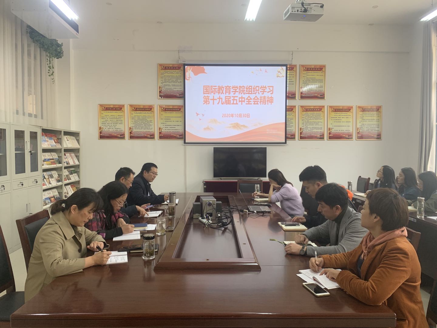 10月30日,tyc122ccvip在汉梁楼144党员活动室集体学习了中国共产党第十九届中央委员会第五次全体会议精神,公司领导班子和全体教职工参加学习。党总支书记李秀琴逐字逐句领读了五中全会公报,并对有关内容进行解读。