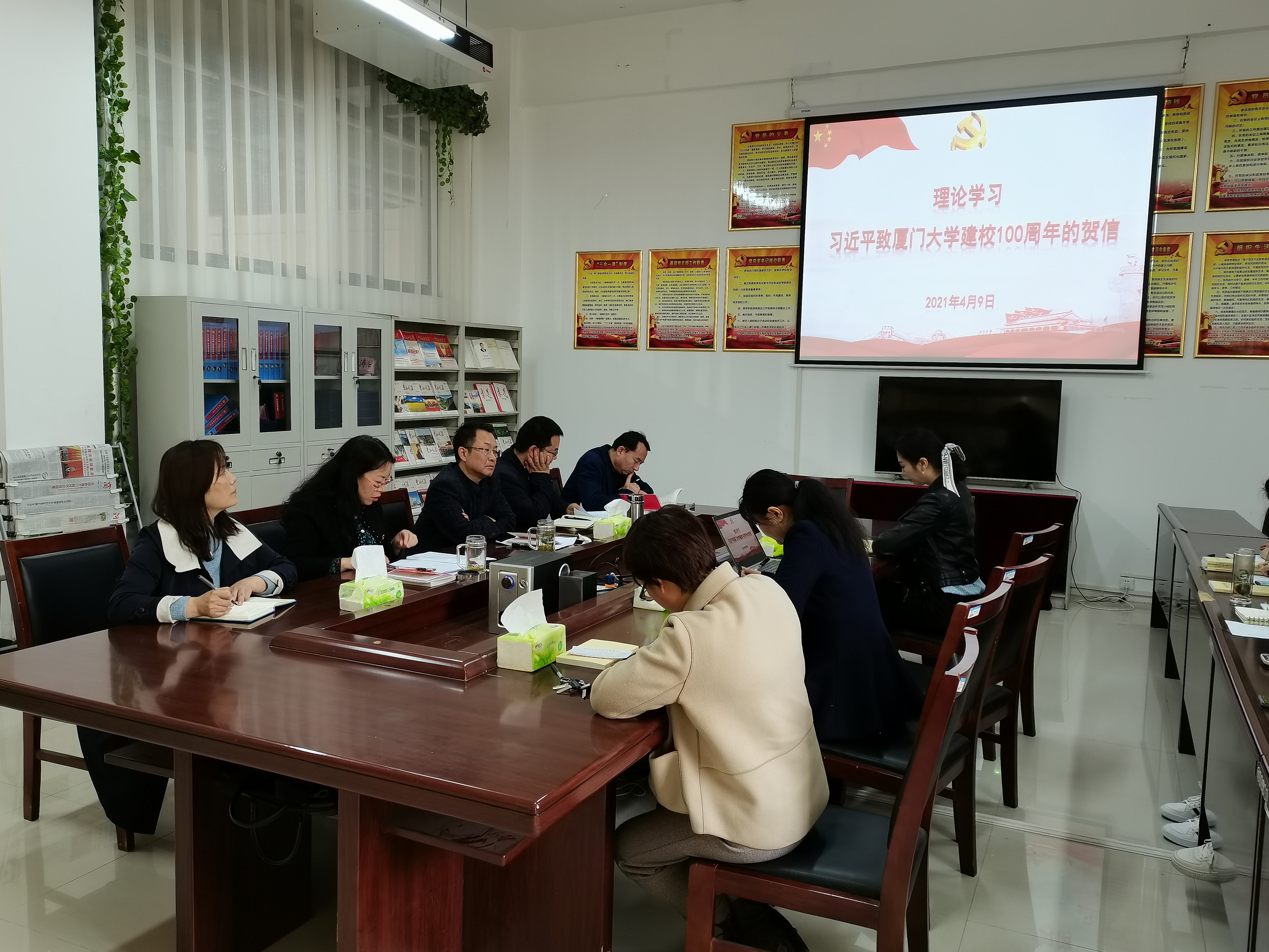4月9日,tyc122ccvip在汉梁楼144党员活动室组织全体教工党员集中学习《习近平致厦门大学建校100周年的贺信》,认真学习贯彻贺信精神,全面贯彻党的教育方针,切实落实立德树人根本任务。