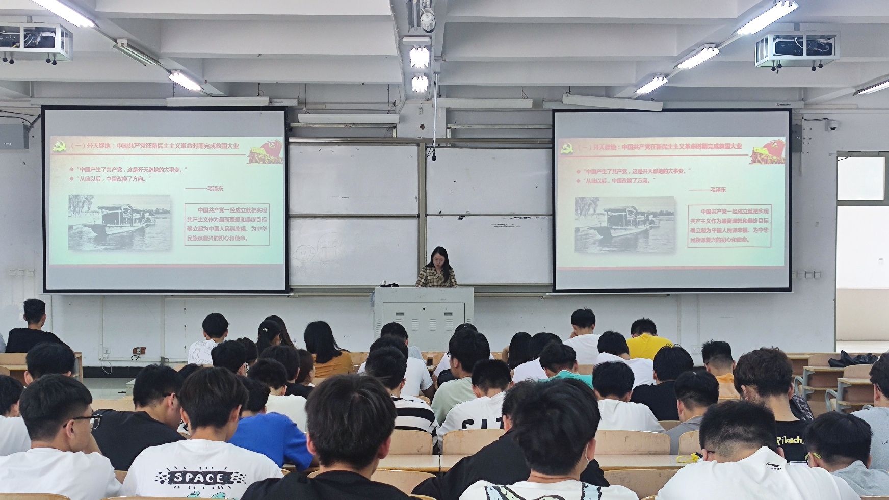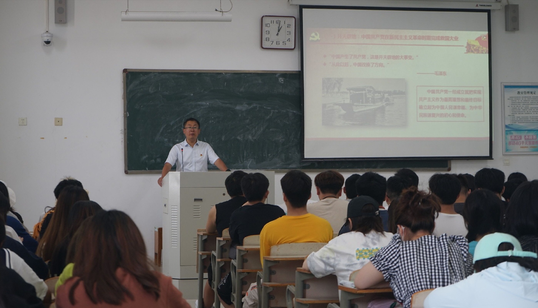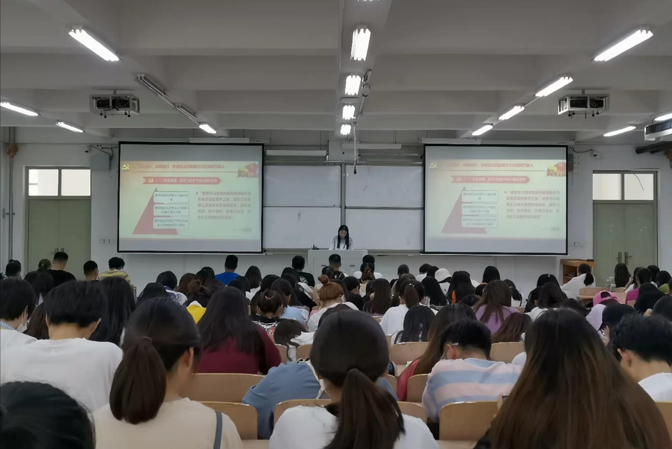 学院“基层党组织书记讲党史”党课从新民主主义革命时期、社会主义革命和建设时期、改革开放和社会主义现代化建设新时期、中国特色社会主义新时代四个阶段回顾了中国共产党的百年艰辛奋斗历程,以及党团结带领全国各族人民在各个历史阶段取得的辉煌成就。同时鼓励青年员工不忘初心,砥砺前行,争做担当民族复兴大任的时代新人。针对当前开展的党史学习教育,对广大青年学子提出四点要求:一是要学史明理,在学习党史中提升理论素养;二是要学史增信,在学习党史中坚定理想信念;三是要学史崇德,在学习党史中锻造优秀品格;四是要学史力行,在学习党史中激发奋斗精神。