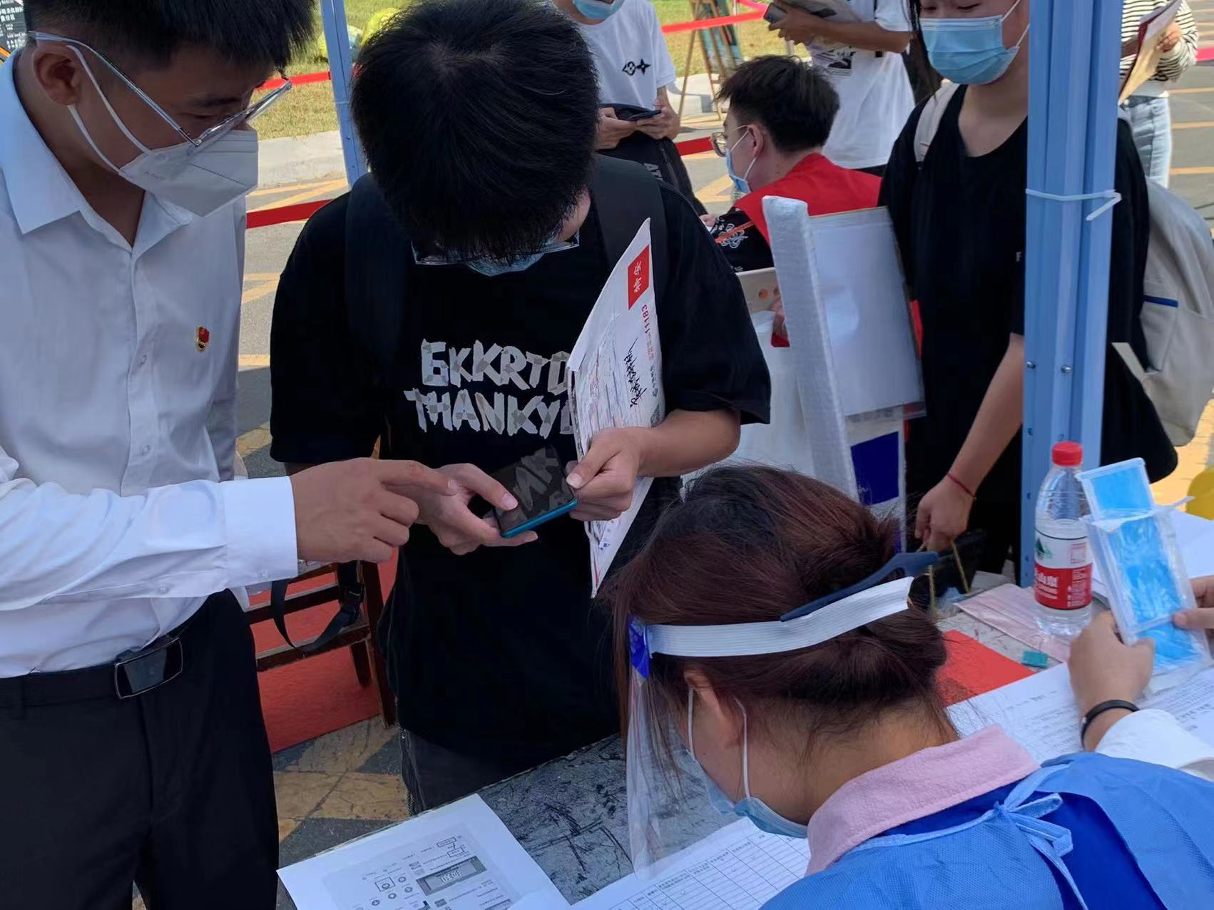 公司成立了由17名教师党员、50员工党员和100员工积极分子组成的“党员迎新先锋队”,为本次迎新工作助力。迎新过程中,随处可见佩戴着党徽的党员同志和身穿蓝色志愿服的员工积极分子,他们耐心地引导新生办理入学手续,主动接过沉甸甸的行李箱,帮助新生搬运至宿舍。大家以忙碌的身影,贴心的服务,热情的笑容,让2022级新生感受到tyc122ccvip这个大家庭的温暖。
