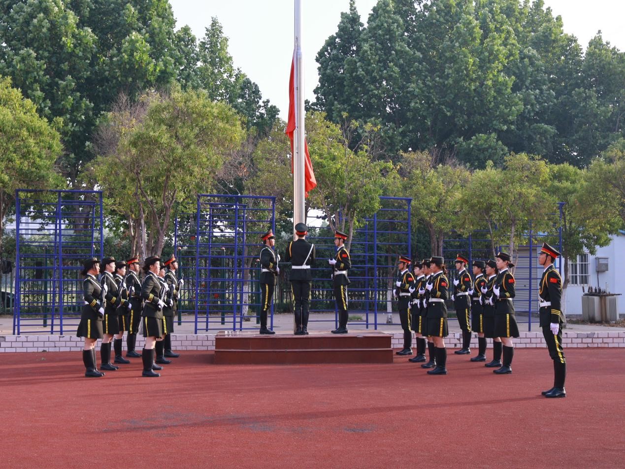 英姿飒爽的国旗护卫队队员们,迈着整齐坚定的步伐护送国旗入场。在激昂的国歌声中,五星红旗冉冉升起,全体师生肃穆而立,向国旗行注目礼,爱国之情在心中升腾。