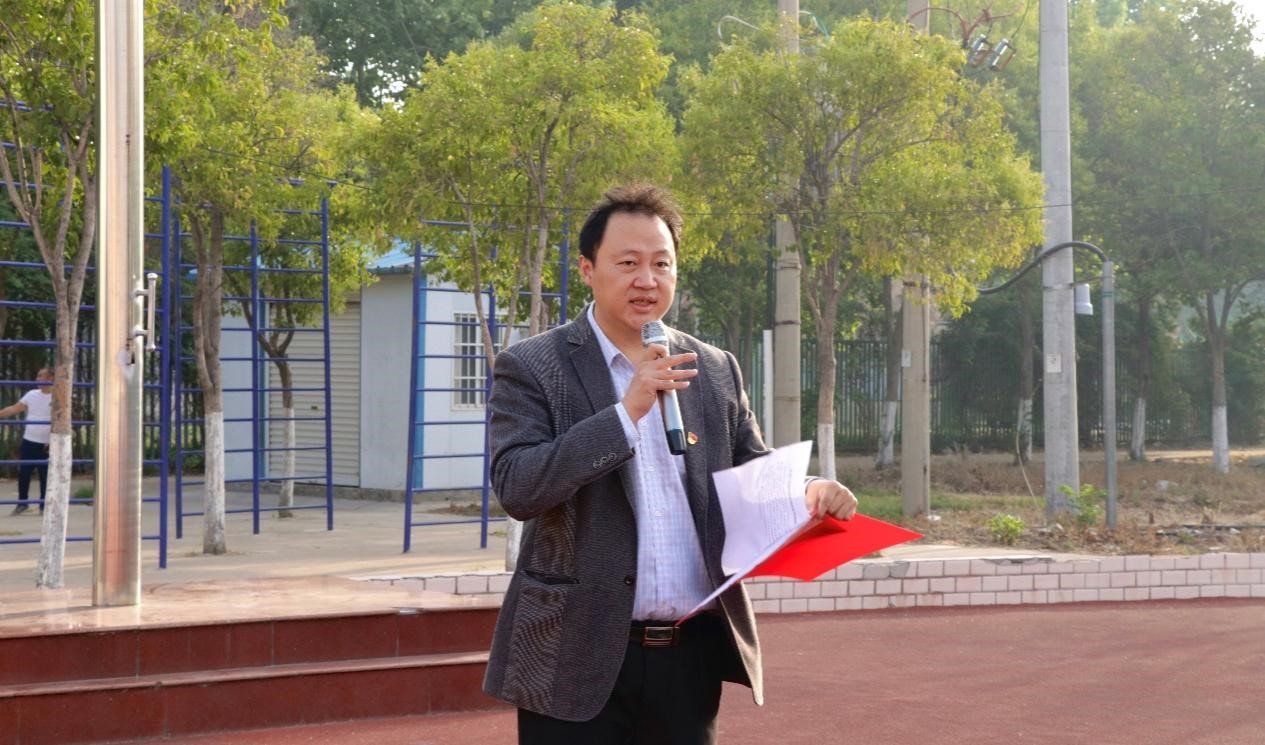 党委副书记曹庆艳在国旗下以“青春心向党,强国勇担当”为题讲授微党课。激励同学们将个人理想融入国家发展,以实现中华民族伟大复兴为己任,站在新的历史起点上,团结一心,奋发向前,以青春之我、奋斗之我,以实干担当书写青春答卷,为强国建设贡献力量。