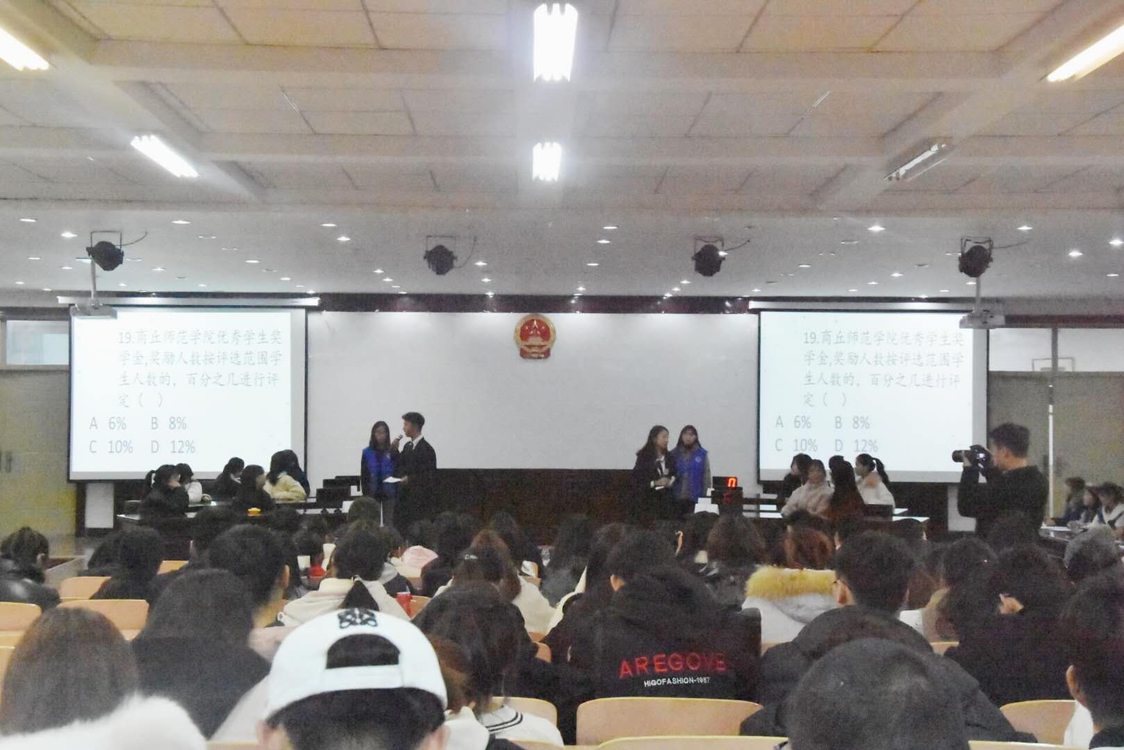 为庆祝中华人民共和国成立70周年,深入开展“不忘初心、牢记使命”主题教育,弘扬爱国主义精神,进一步培育良好的校风学风,增强公司员工对校规校纪的学习了解,提高遵守校规校纪的自觉性和积极性,12月4日晚七点,tyc122ccvip《员工手册》知识竞赛总决赛在行方楼模拟法庭举行。tyc122ccvip团总支书记许斌,辅导员赵留会、张慧敏出席了本次竞赛,200余名员工代表现场观看比赛。