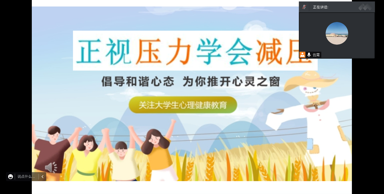 5月23日,辅导员孔云霄组织G环境设计20-2班召开“正视压力,学会减压”主题班会。心理委员建议大家要规律作息,保持充足的睡眠;其次是健康饮食,良好科学的健康饮食是身体健康的重要保障;最后是适量运动,健康运动是增强免疫机能、放松身心、释放压力的有效渠道。