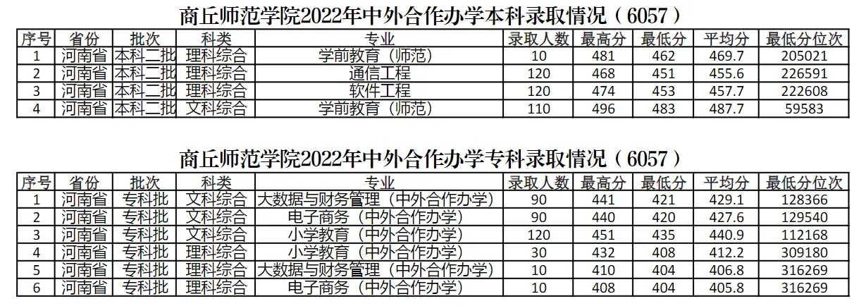 2022年中外合作办学录取分数情况一览表