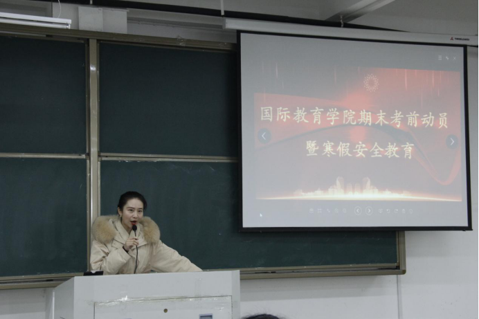 随后,教学办公室副主任马老师针对考试细节以及考风考纪做出了详细介绍,强调了期末考试的时间、纪律以及补考等问题,讲述了关于诚信考试的内容,以真实的例子告诫同学们要诚信考试,使同学们清楚地认识到考试作弊的危害。