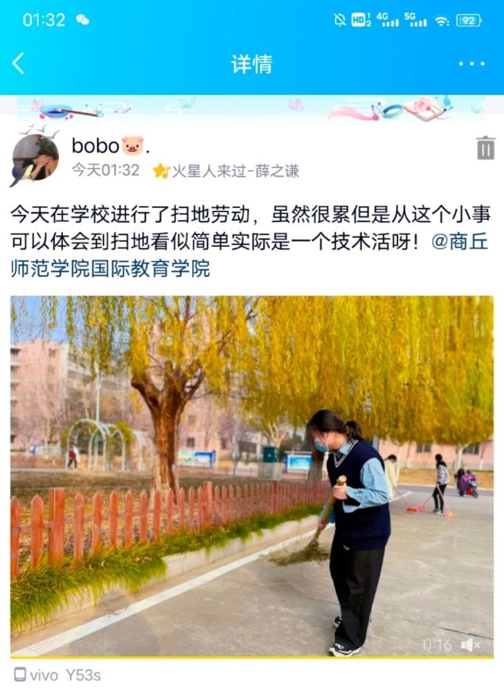 “弘扬劳动精神,践行劳动之路”活动:本次活动以线上模式进行,同学们拍摄校园中劳动的场景并以说说形式进行宣传劳动精神。此次活动动员员工从自己做起,从生活中的点点滴滴做起,讲劳动精神落实于实际行动中。