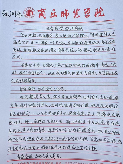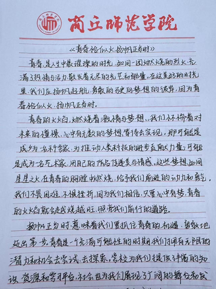 为提高同学们的文学素养和表达能力,激发创作热情,展现青春风采。归德书院员工会新媒体中心于10月25日在归德文化广场举办了招商公路“C Green”杯“青春正当时,奋进新时代”征文比赛。