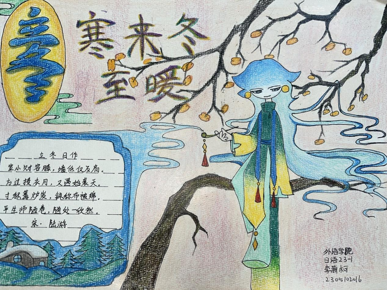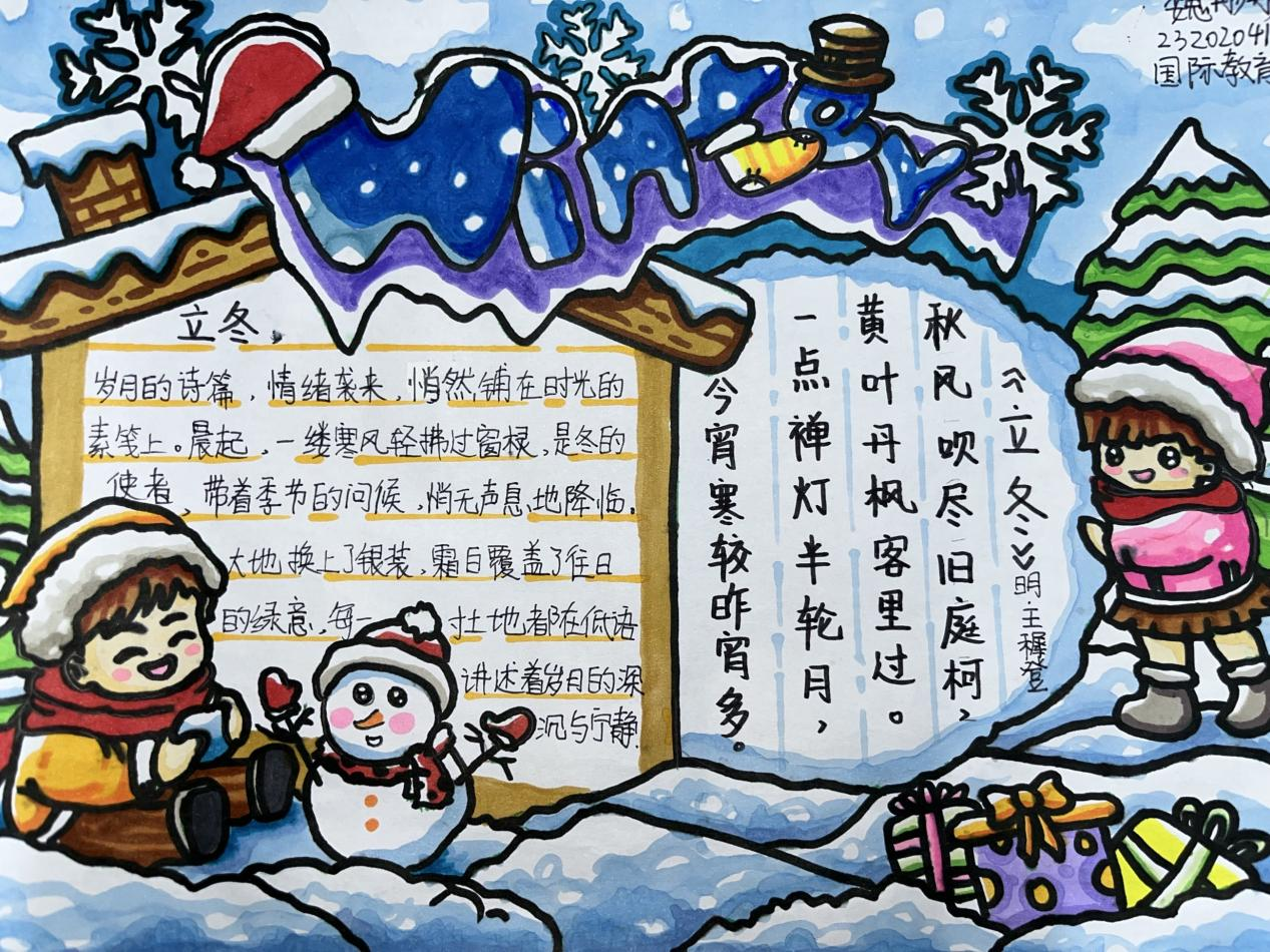 本次活动通过手抄报的形式,呼吁同学们了解“立冬”这一传统文化。活动期间,同学们在自身创作手抄报的同时,深入地了解“立冬”的历史由来、习俗演变和诗词之美,传承传统文化的同时也体现了同学们的创新思维。活动结束后,工作人员根据评分细则评选出了一等奖两名,二等奖三名,三等奖六名。