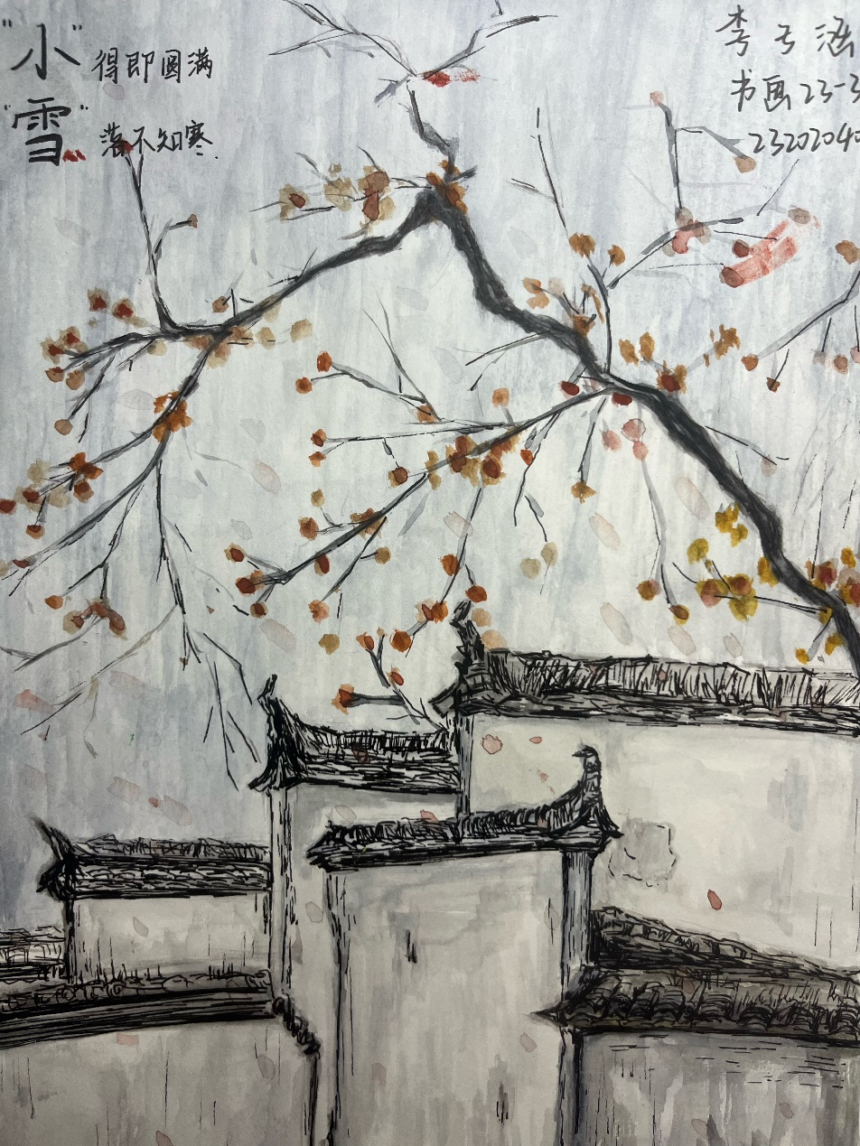 比赛期间,现场弥漫着浓厚的艺术氛围,同学们积极上交自己的作品,作品中显现出同学们对小雪这一节气的独特见解,体现出了同学们的创新意识。比赛结束后,员工权益中心工作人员根据比赛细则评出了一等奖四名,二等奖五名,三等奖六名。