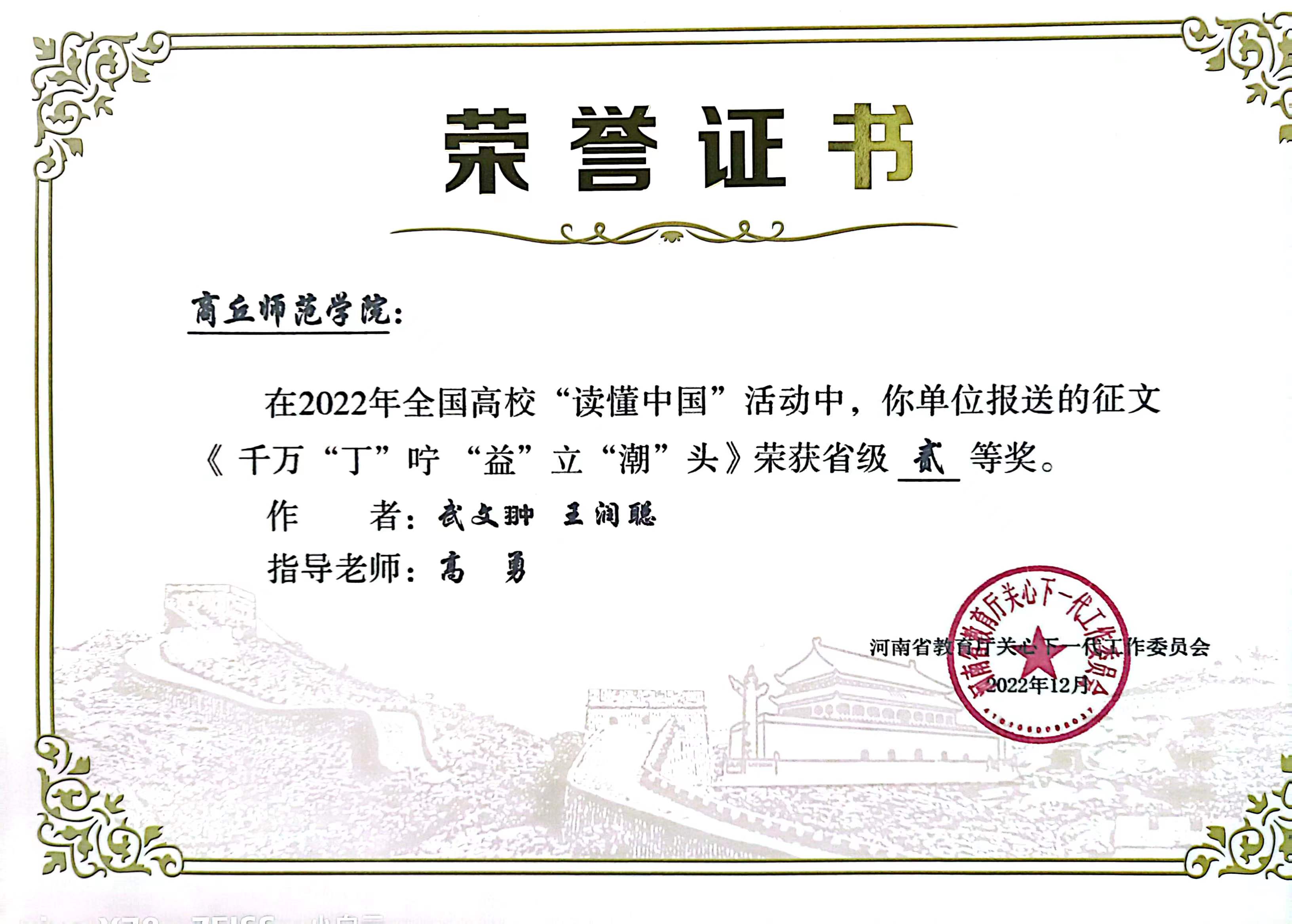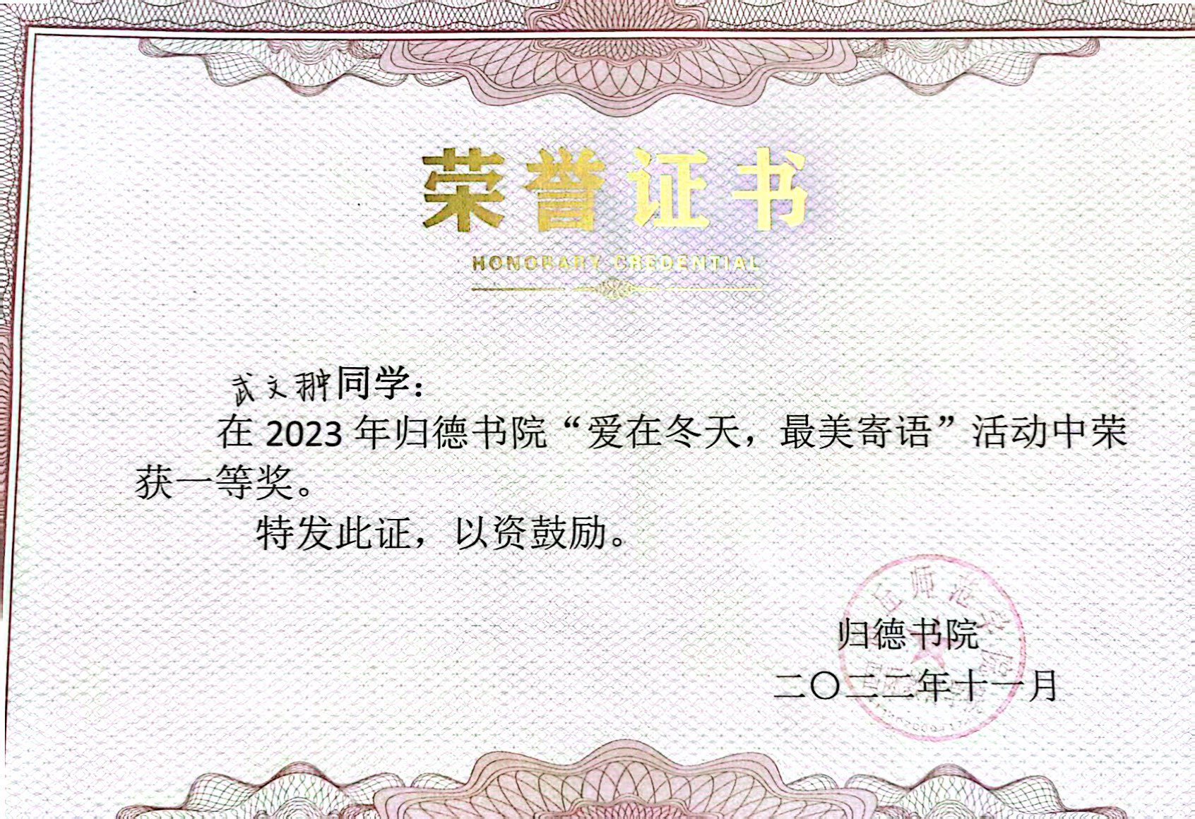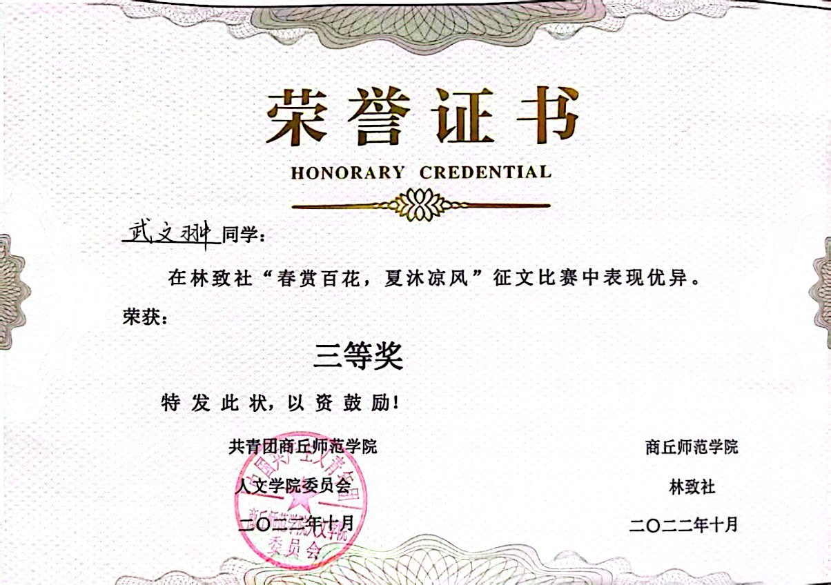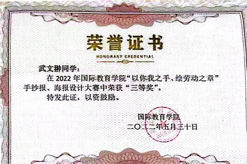 个人荣誉证书: